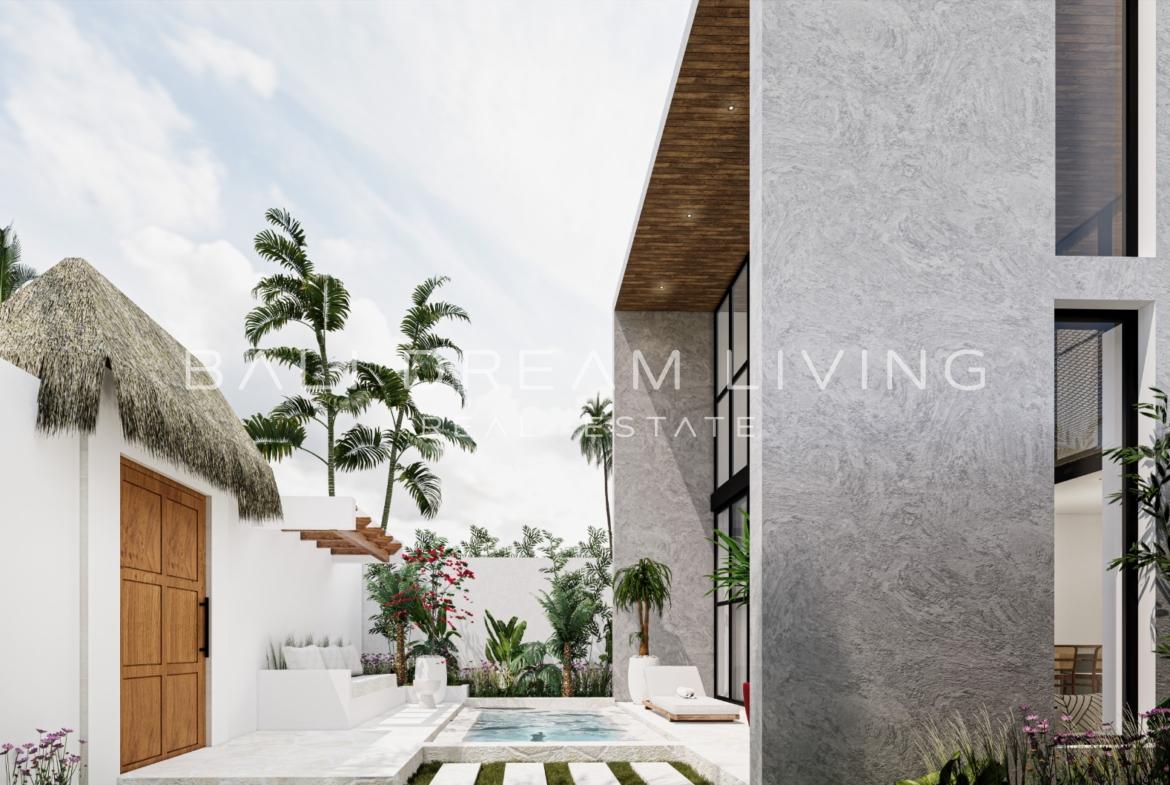 Discover these contemporary open-plan villas nestled in the Nyang-Nyang area, adjacent to the mesmerizing white sand beaches. This collection of villas promises a harmonious fusion of modern tropical design and intricate wooden accents, resulting in a truly captivating aesthetic.