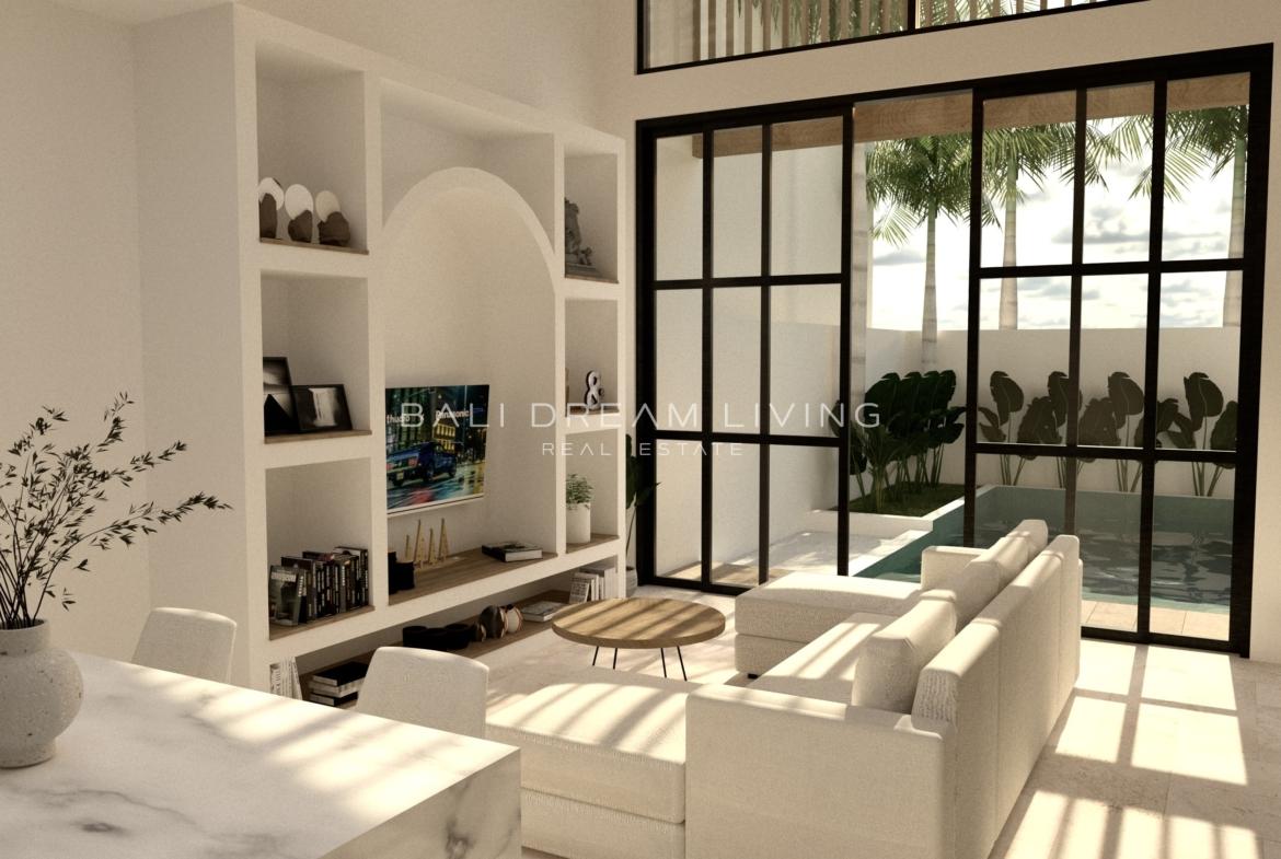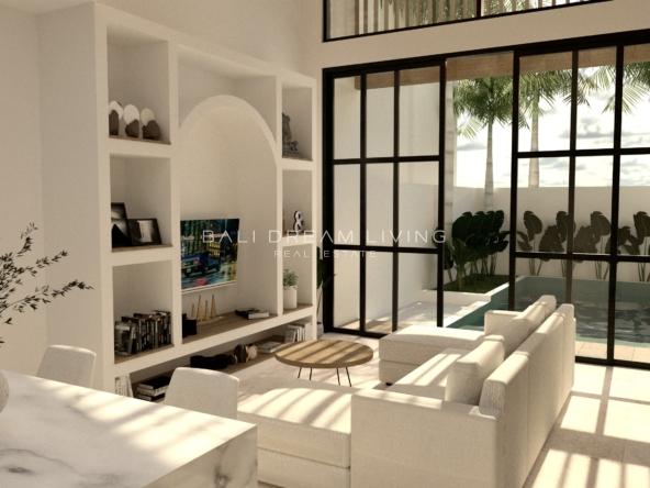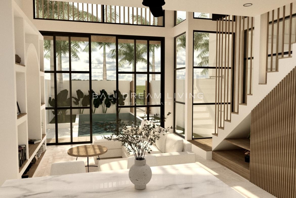 Designed in a contemporary loft-style layout, the villa spans 73.2 square metres and sits on a 108m² plot, thoughtfully planned to create a sense of space and flow. The open-plan living area leads effortlessly to a sleek kitchen and dining space, while the bedroom area features a soothing palette and direct access to your own private pool, perfect for sun-drenched afternoons or evening dips under the stars.