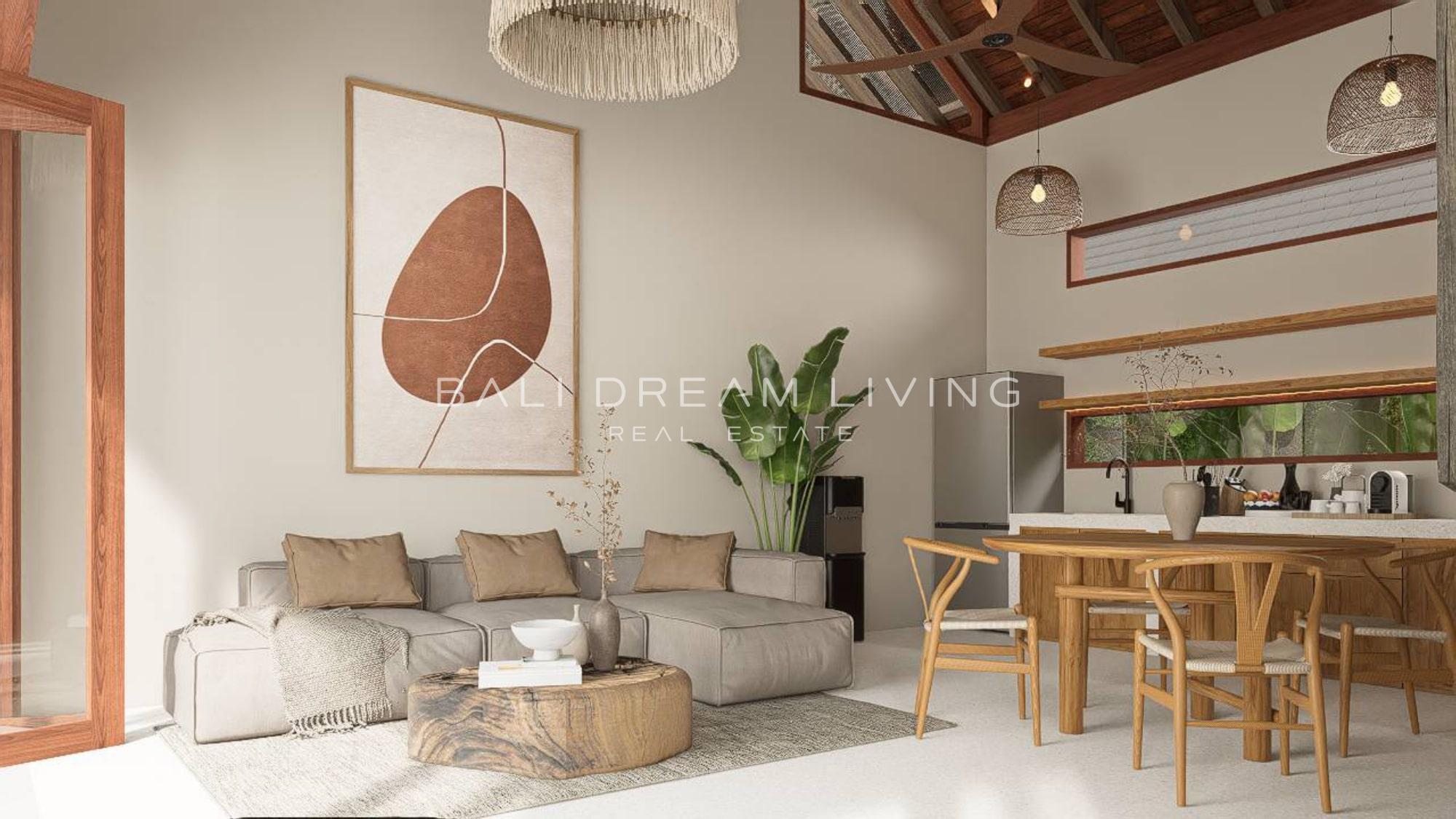 Nestled in one of Uluwatu’s most serene locations, this stylish two-bedroom villa offers a refined blend of modern comfort and island living. Set across a single floor, the villa has been thoughtfully designed with soaring ceilings that enhance the sense of space and light throughout. Each of the two spacious double bedrooms features its own smart ensuite bathroom, complete with contemporary fittings and natural tones that reflect the laid-back elegance of Bali’s southern coast.