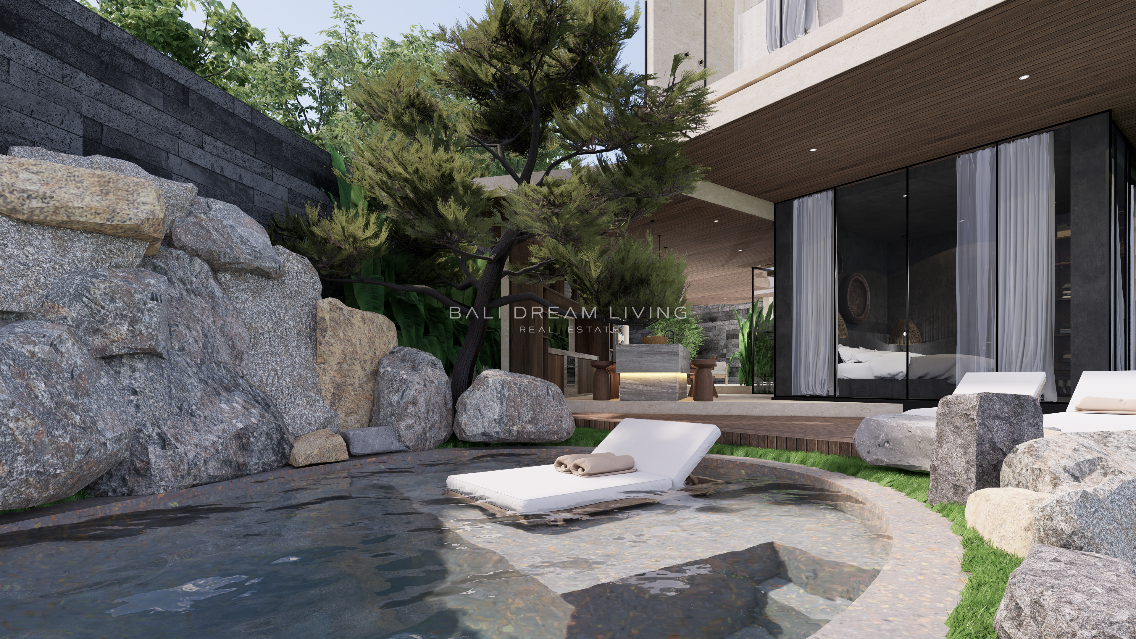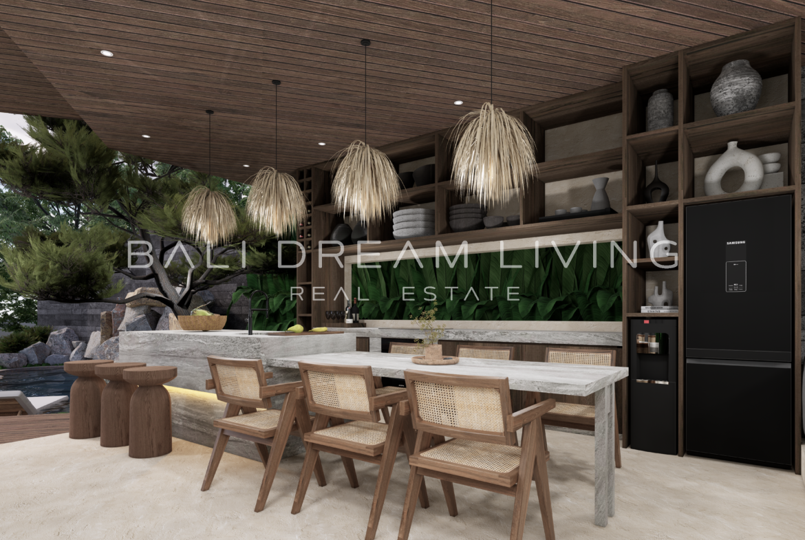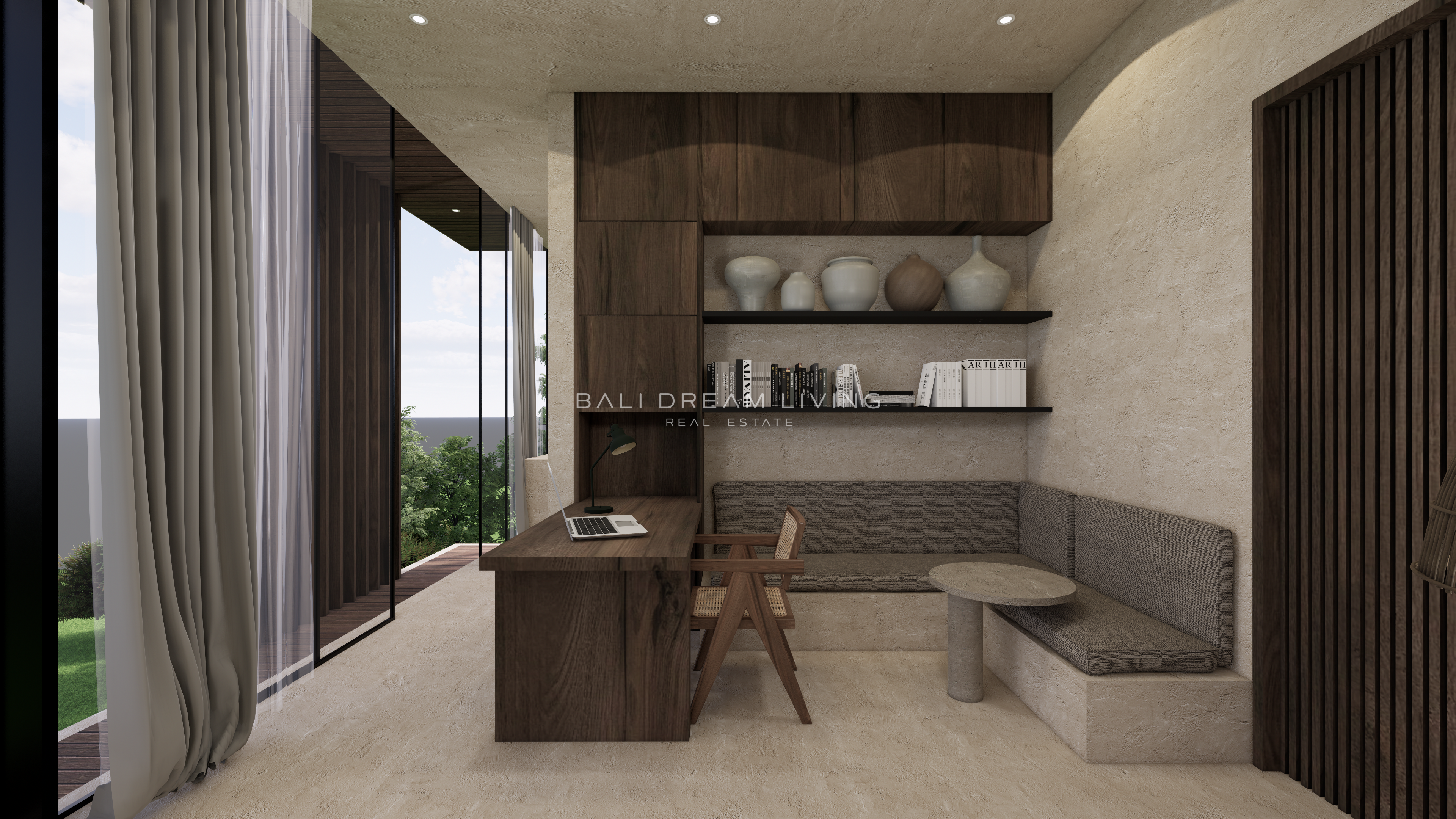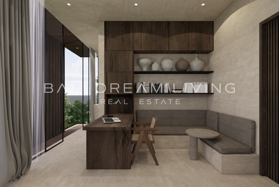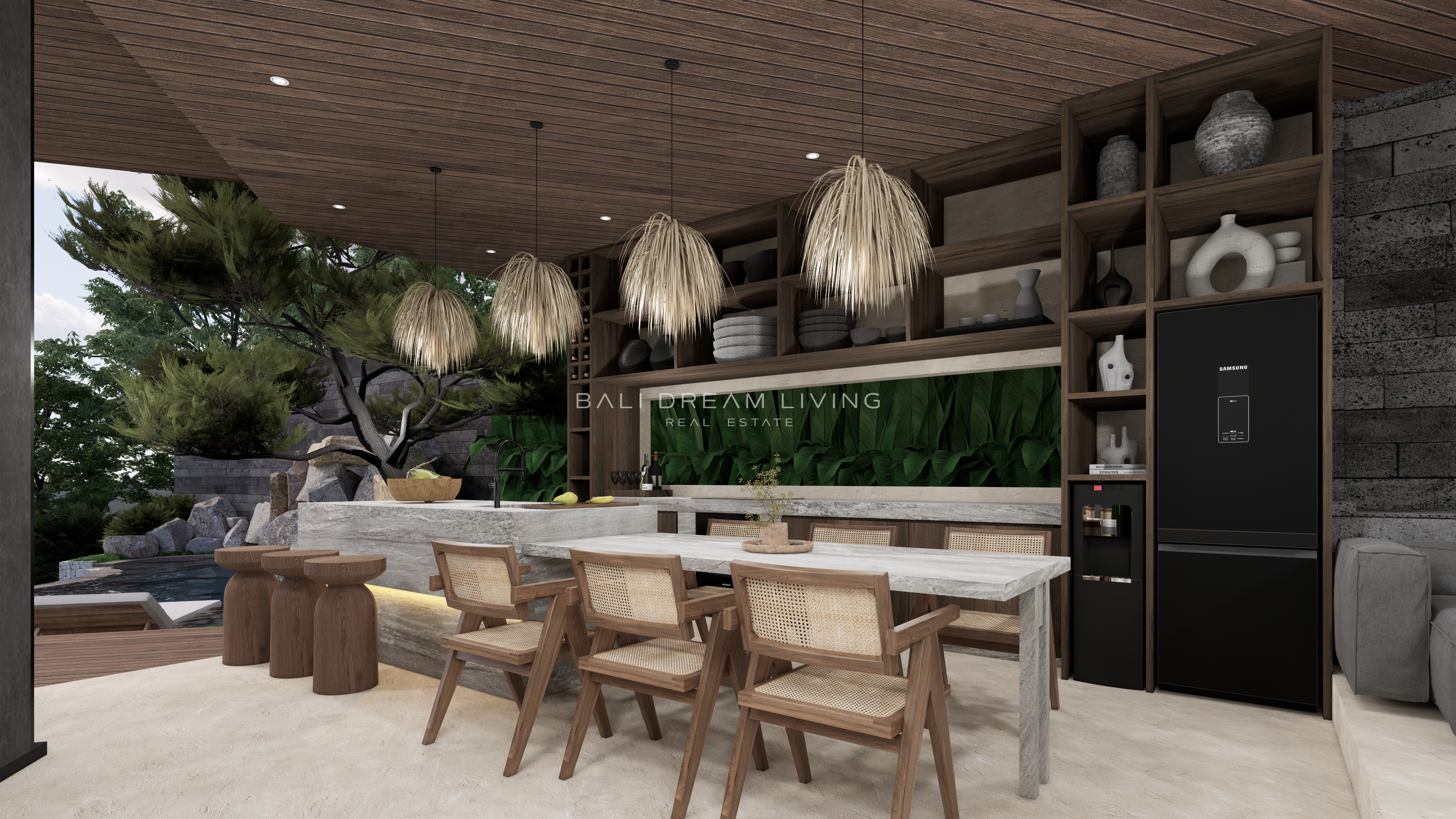 Nestled on the elevated hills of Uluwatu, this captivating two-bedroom, two-bathroom villa unveils a world of magic and sophistication with its modern Japanese-inspired design. Arranged over two floors, this meticulously finished residence boasts panoramic sunset and ocean views, creating a tranquil haven that maximizes every viewpoint.