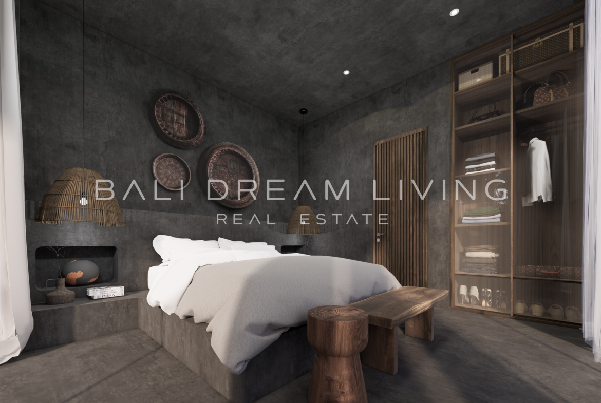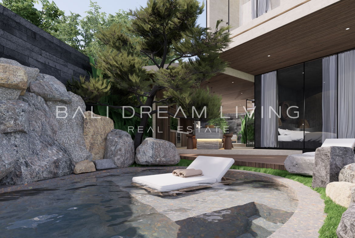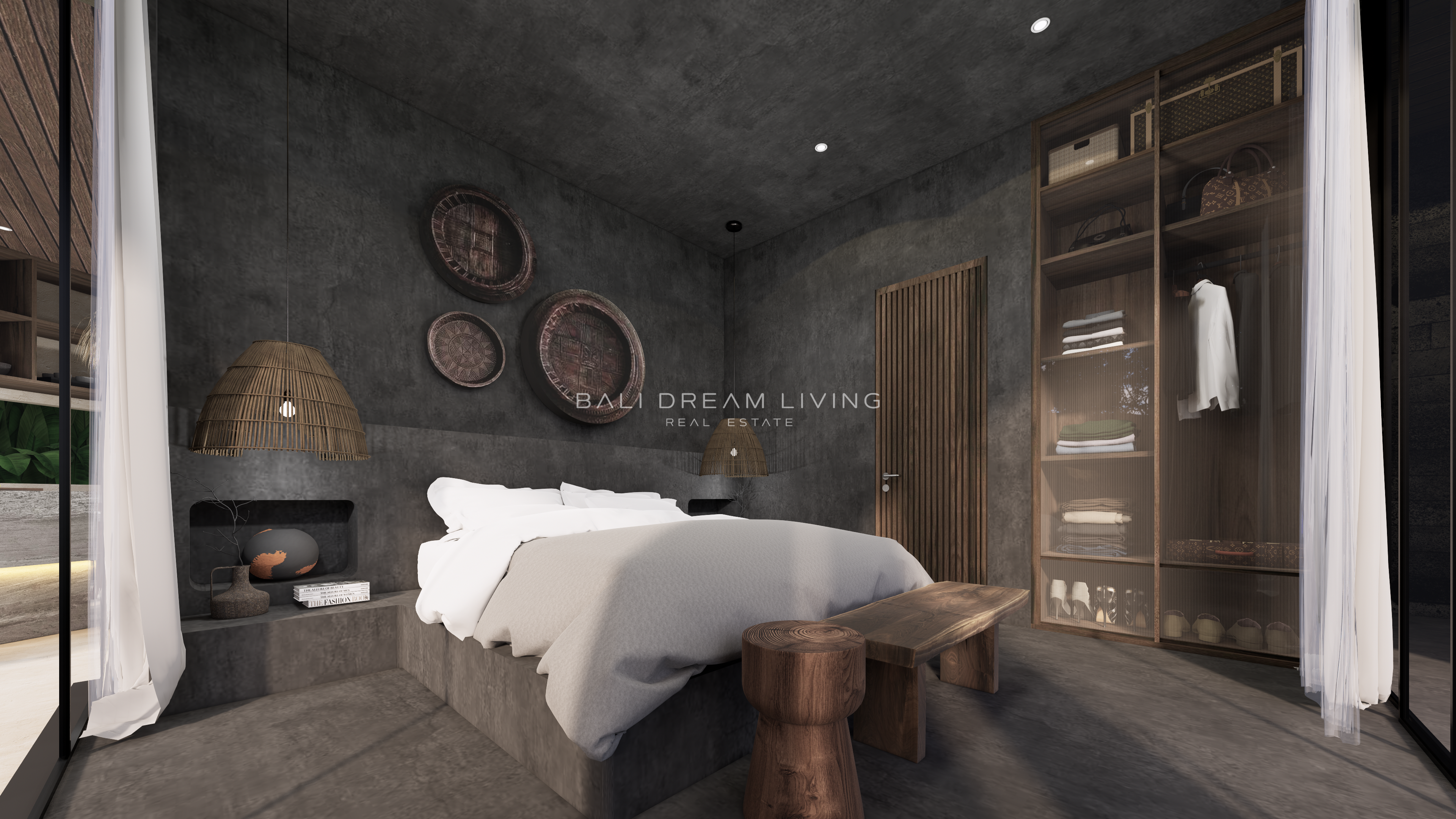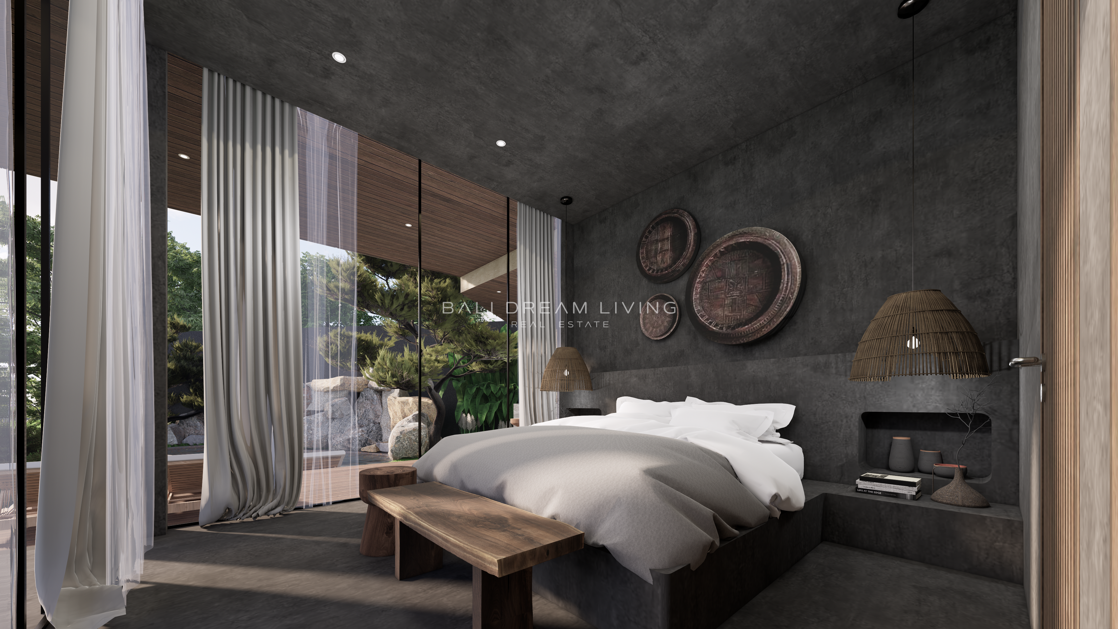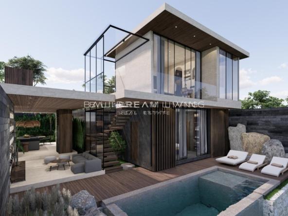 Nestled on the elevated hills of Uluwatu, this captivating two-bedroom, two-bathroom villa unveils a world of magic and sophistication with its modern Japanese-inspired design. Arranged over two floors, this meticulously finished residence boasts panoramic sunset and ocean views, creating a tranquil haven that maximizes every viewpoint.