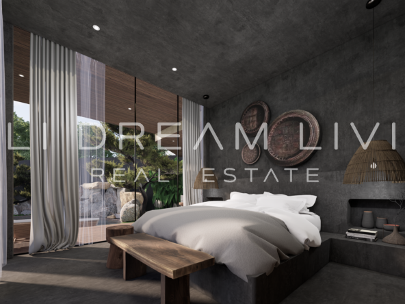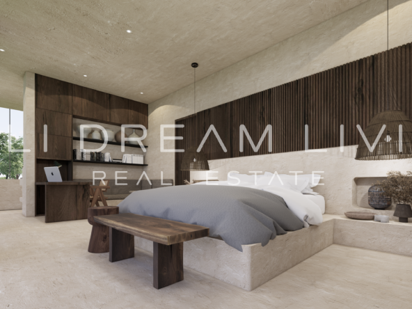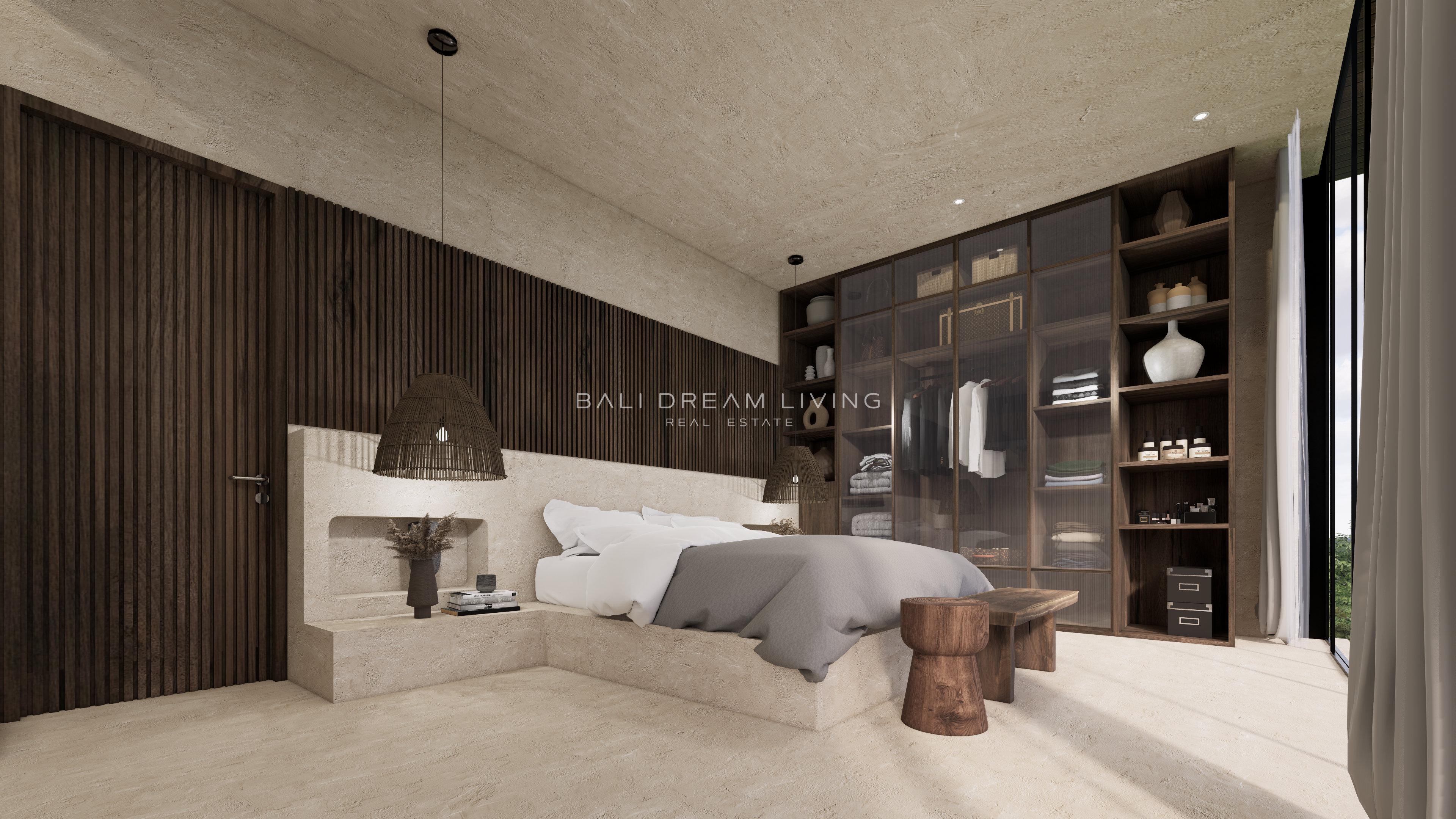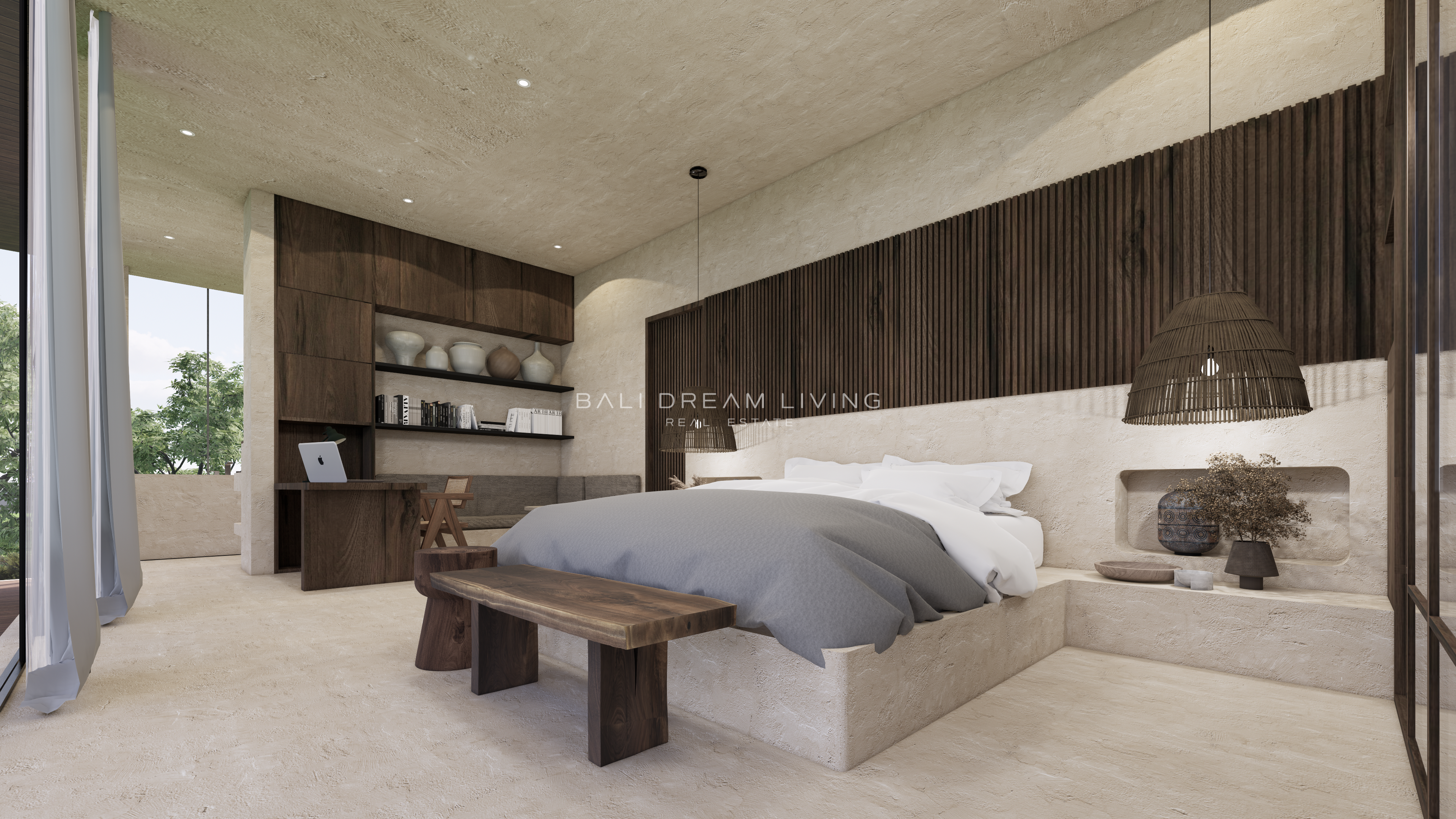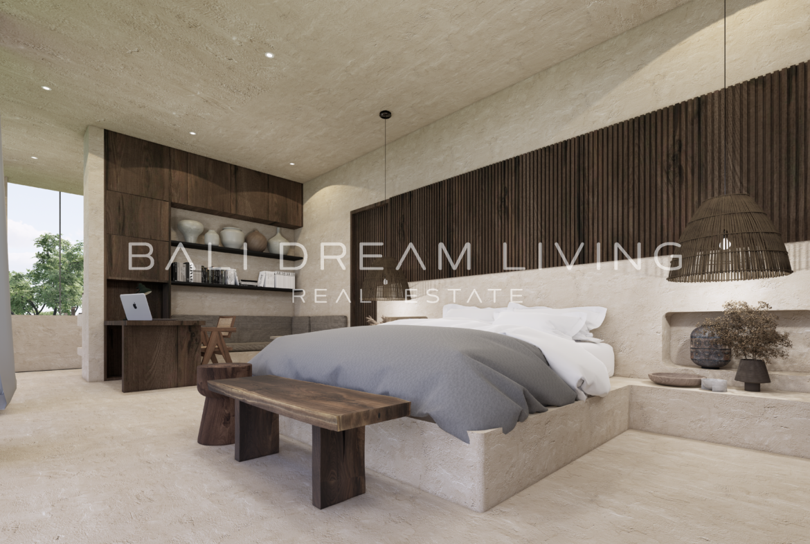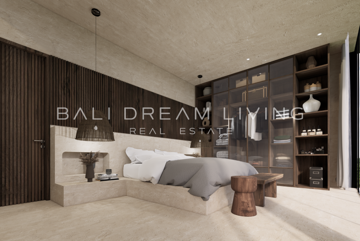 Nestled on the elevated hills of Uluwatu, this captivating two-bedroom, two-bathroom villa unveils a world of magic and sophistication with its modern Japanese-inspired design. Arranged over two floors, this meticulously finished residence boasts panoramic sunset and ocean views, creating a tranquil haven that maximizes every viewpoint.