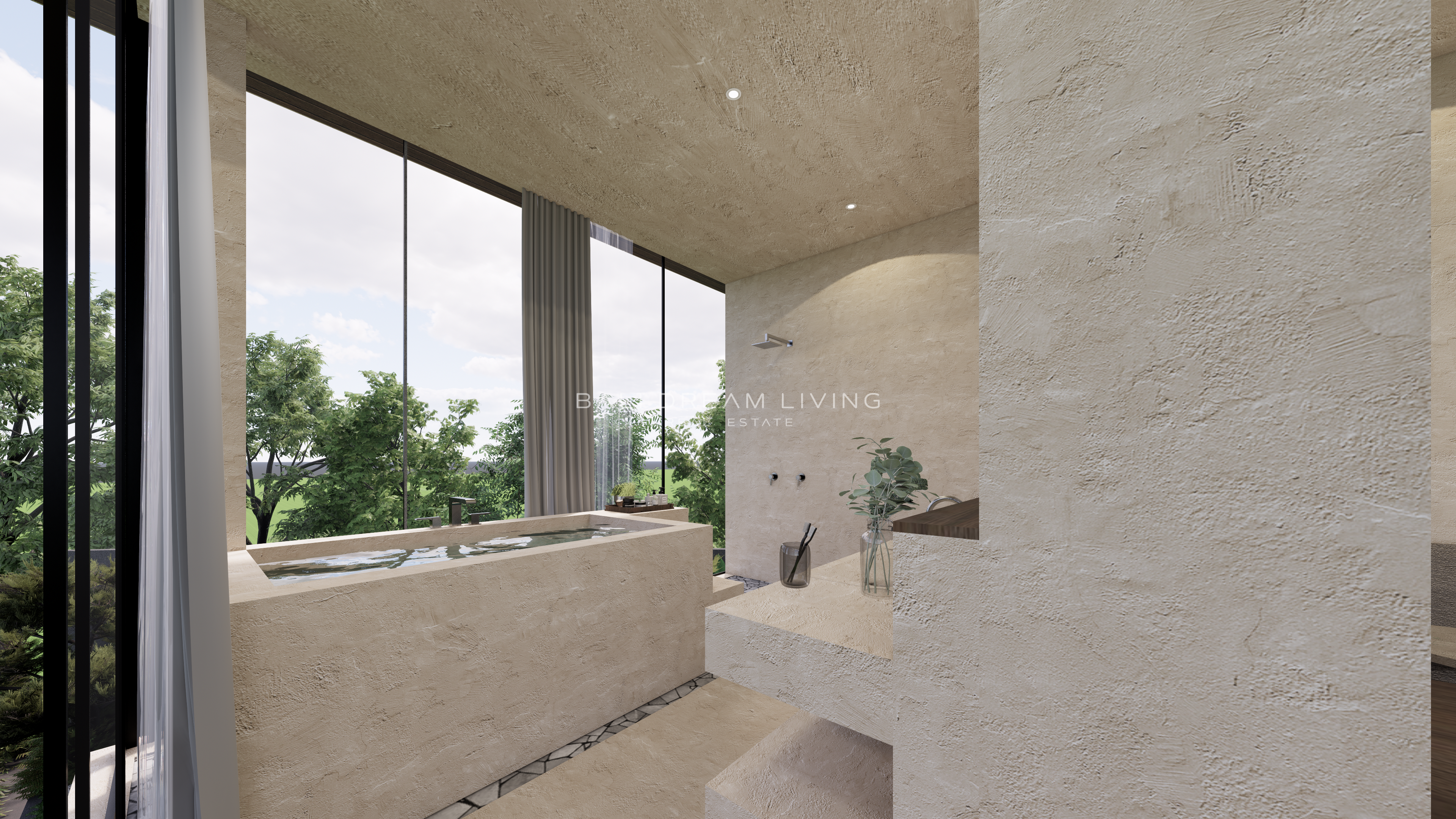 The master room, designed for ultimate comfort, features a dedicated working area with captivating ocean vistas. Indulge in luxury living with en-suite bathrooms, elegantly finished to a high standard, adding a touch of refinement to this hillside retreat.