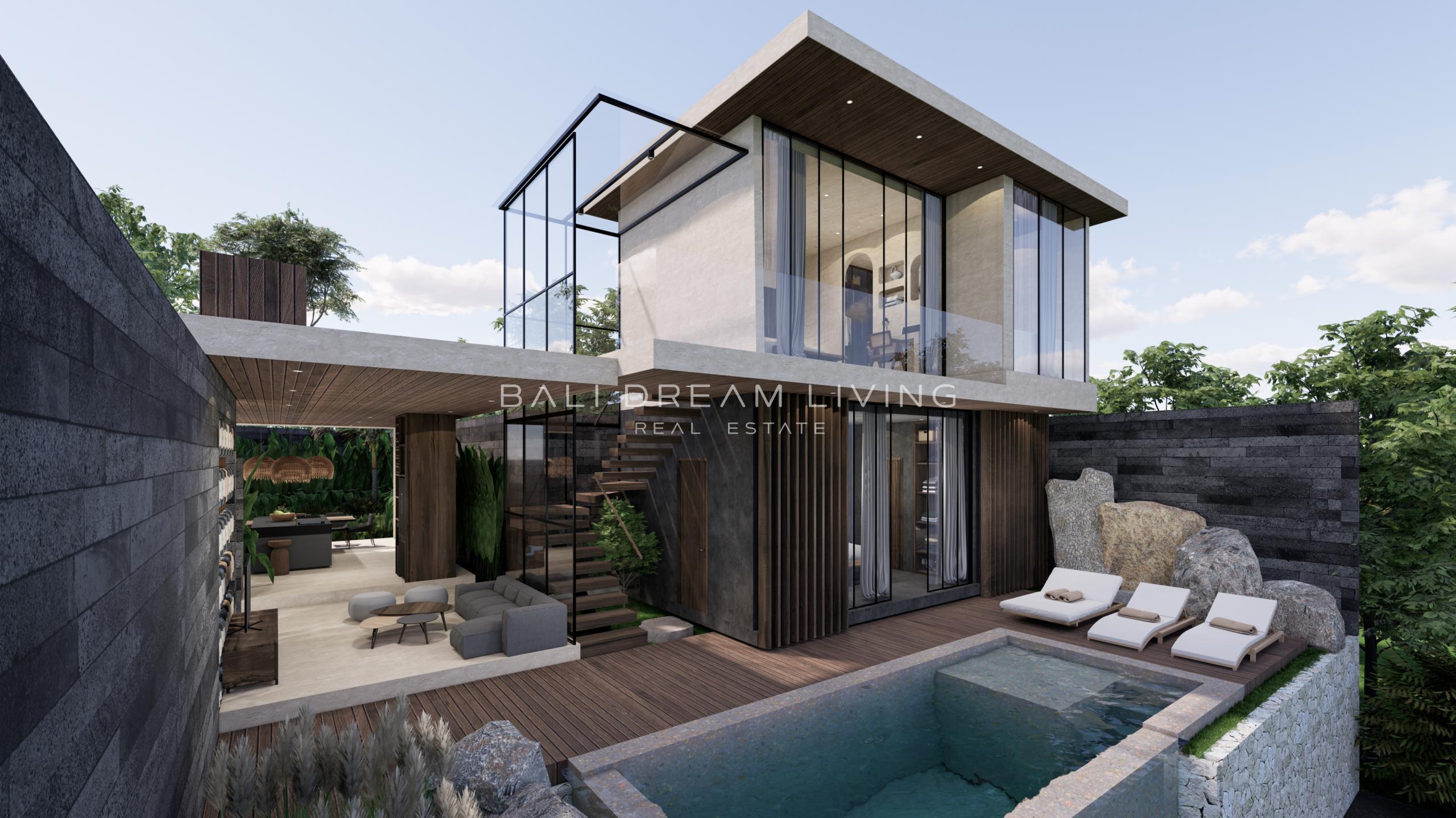 Nestled on the elevated hills of Uluwatu, this captivating two-bedroom, two-bathroom villa unveils a world of magic and sophistication with its modern Japanese-inspired design. Arranged over two floors, this meticulously finished residence boasts panoramic sunset and ocean views, creating a tranquil haven that maximizes every viewpoint.