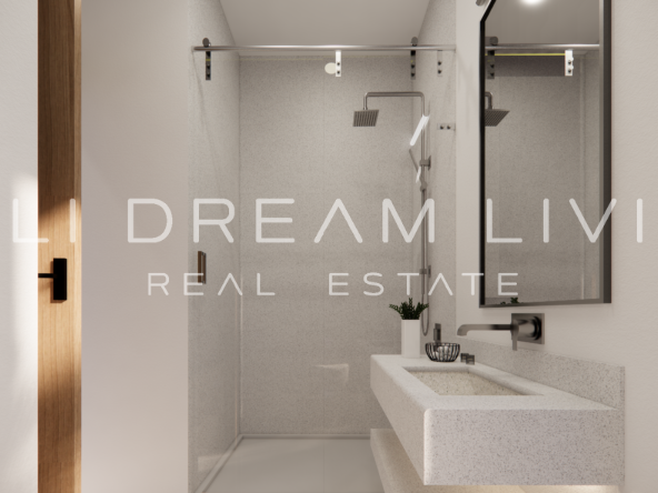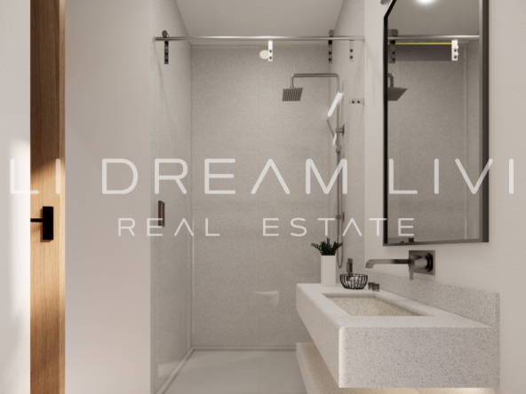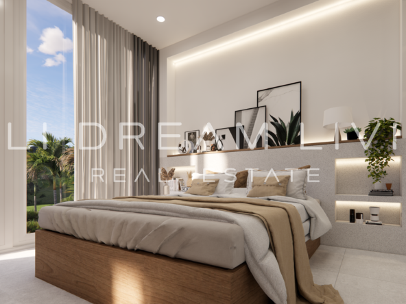The upper floor features two generously sized double bedrooms, each with its own en suite bathroom, finished to modern and elegant standards. The villa spans 130 sqm of land with an 88 sqm built size, offering ample space for comfortable living.