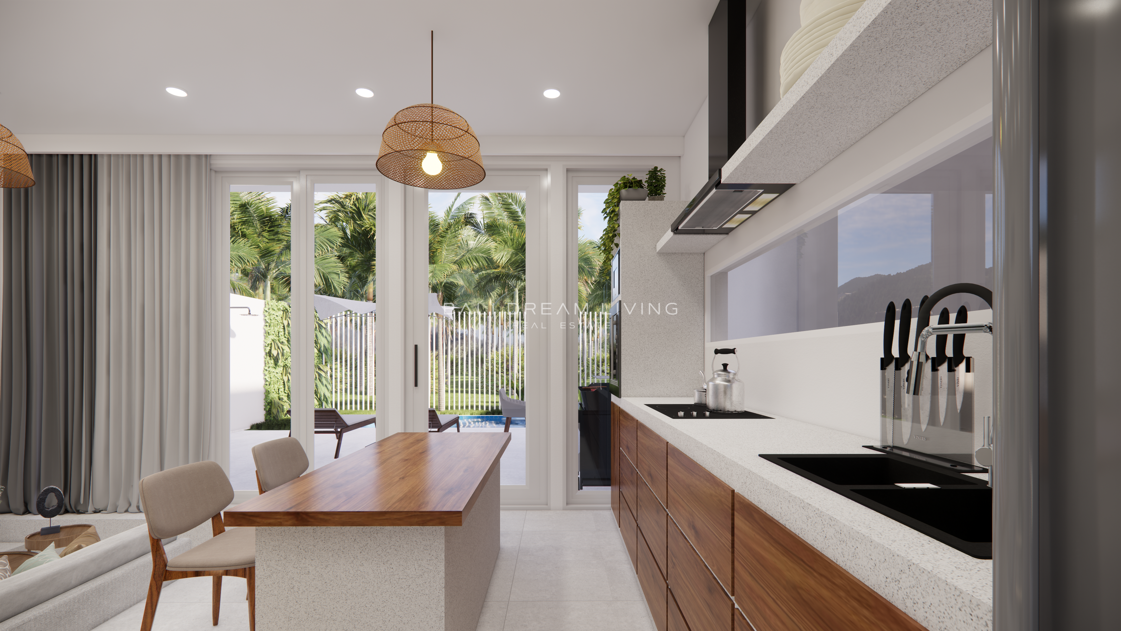 Nestled in the serene area of Ungasan, this impeccably presented villa offers an abundance of natural light and contemporary design. The spacious two-bedroom units are thoughtfully designed with a smart open-plan kitchen and reception area, complete with a stylish breakfast counter, making it perfect for both relaxing and entertaining.