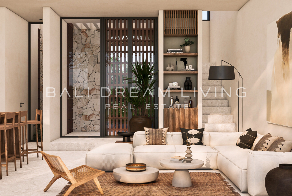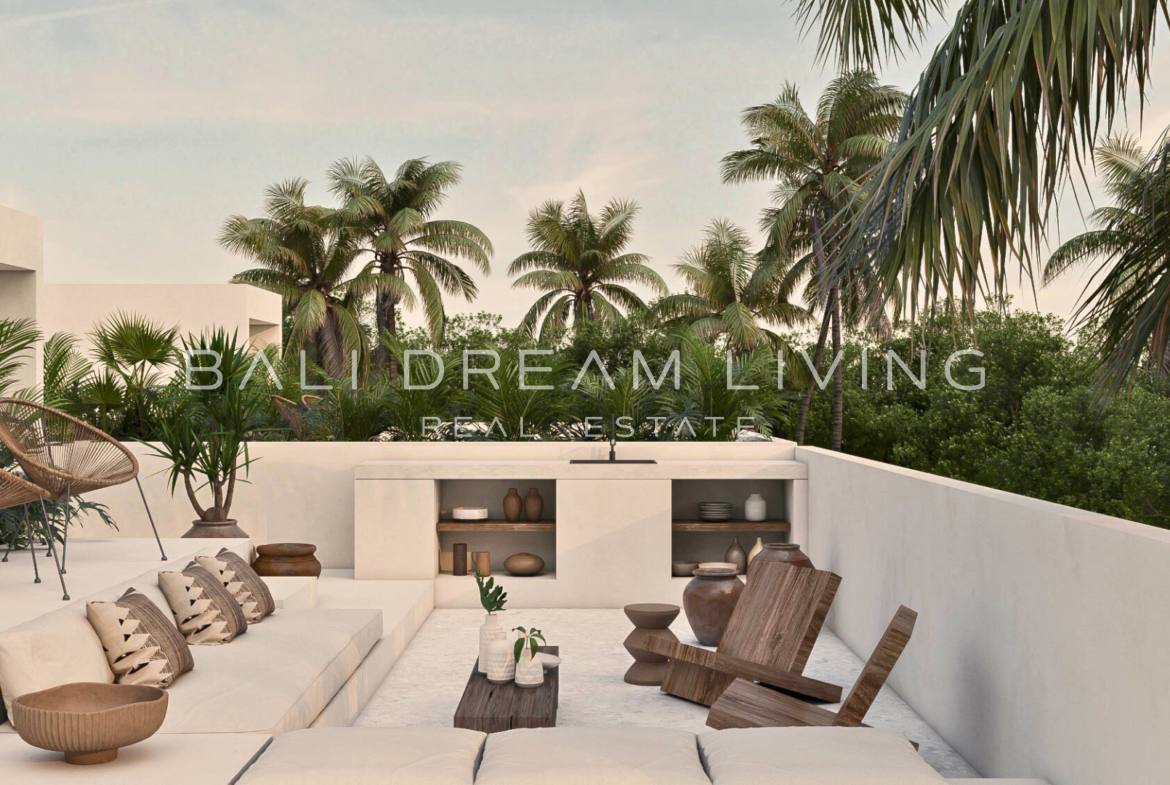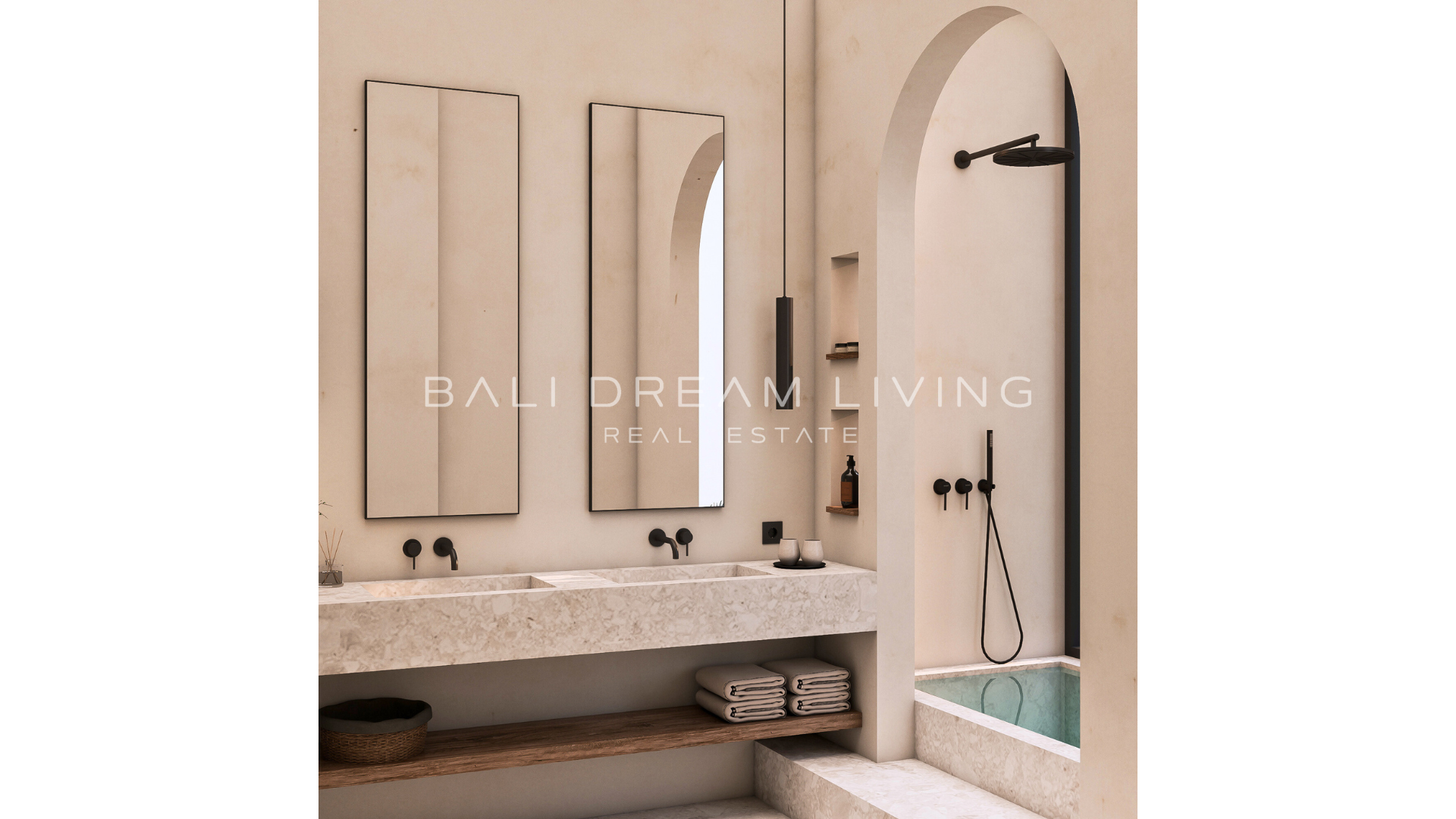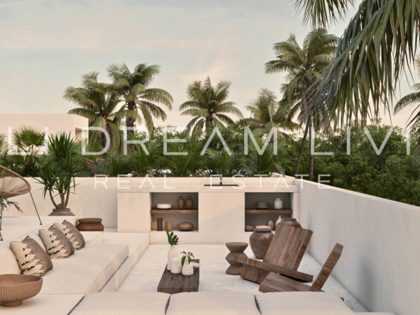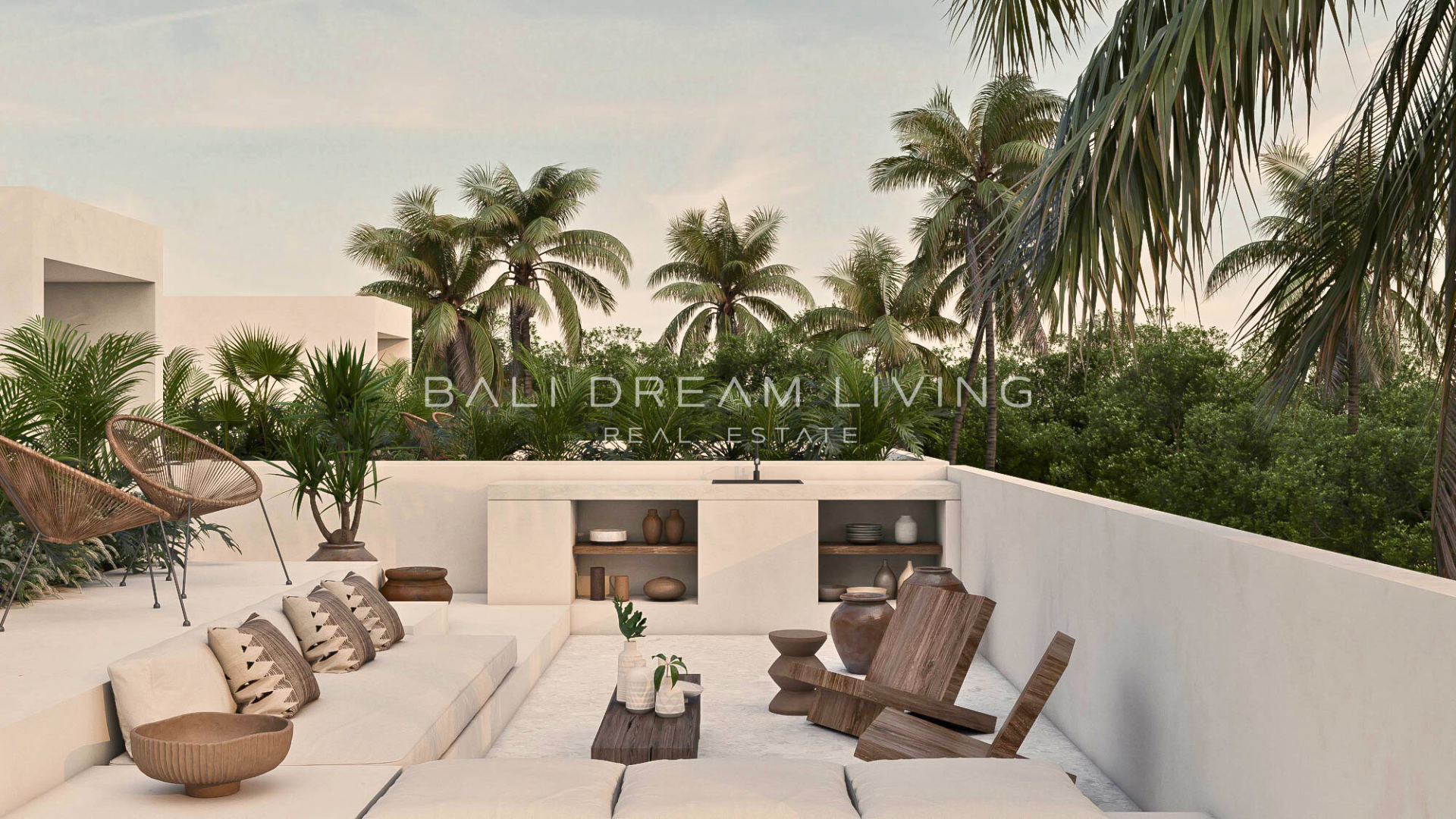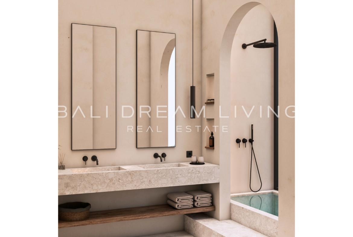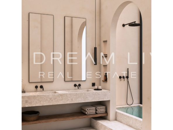 On the second level, you’ll find two private bedrooms, each with its own en-suite bathroom. The master bathroom is a spa-like retreat, featuring a luxurious bathtub. The rooftop offers an ideal spot for sunbathing or watching sunsets. With the option to enhance the rooftop with our premium design package, this space can be transformed into the perfect venue for hosting friends, family, or events. Or simply unwind with a glass of wine as you enjoy the stunning sunset views, making this villa a perfect retreat.