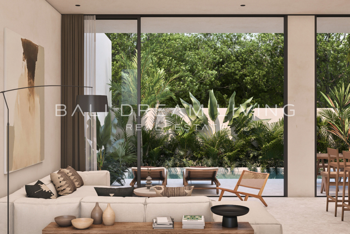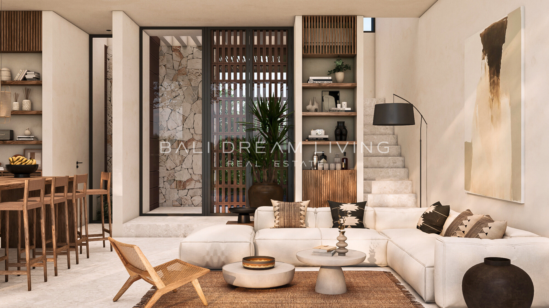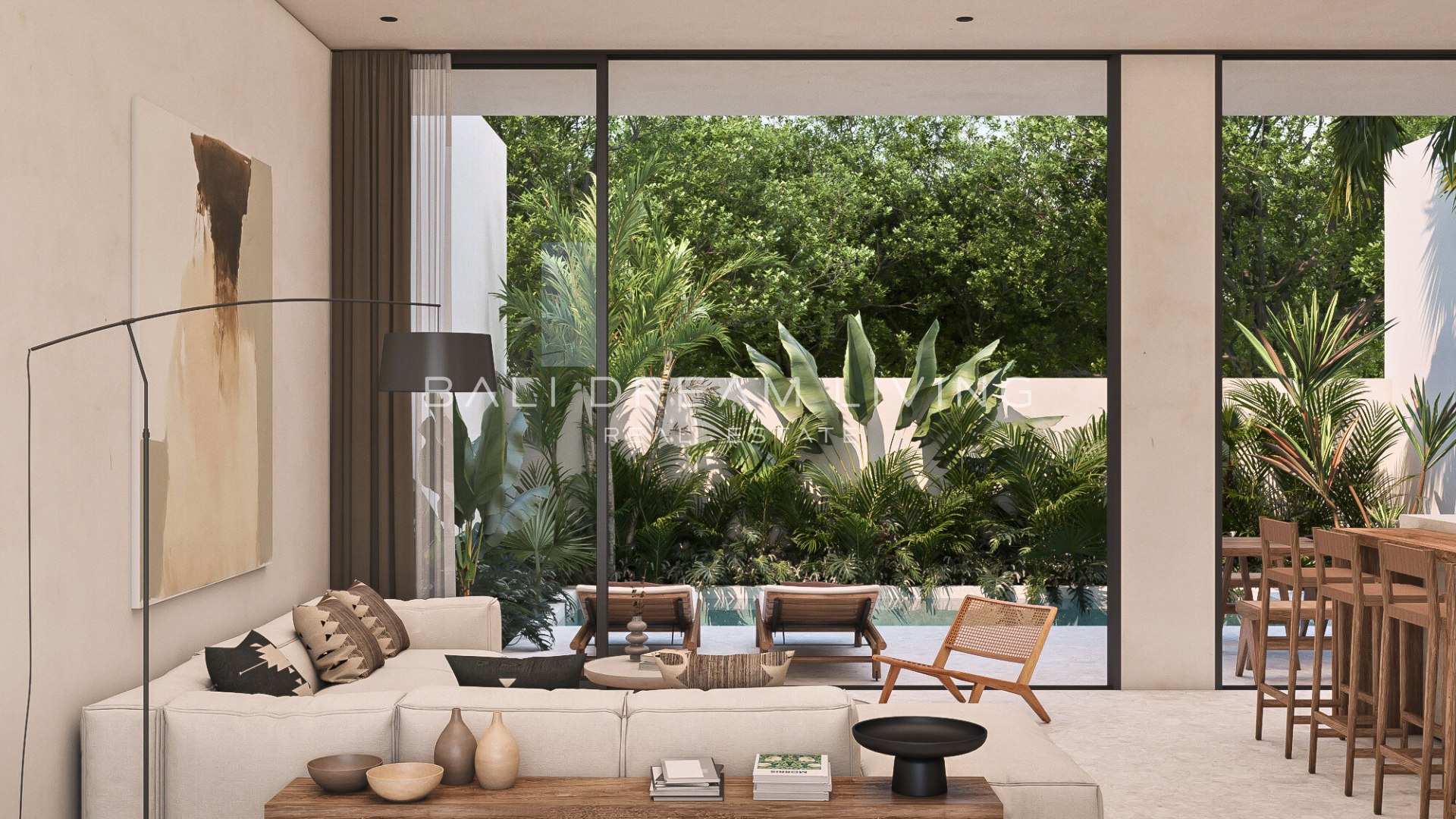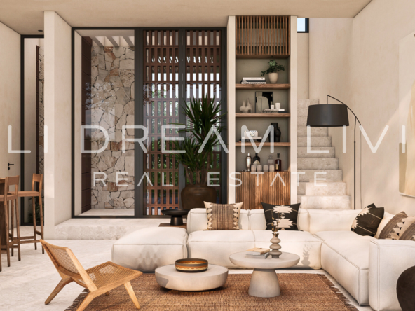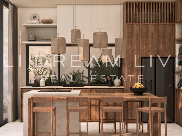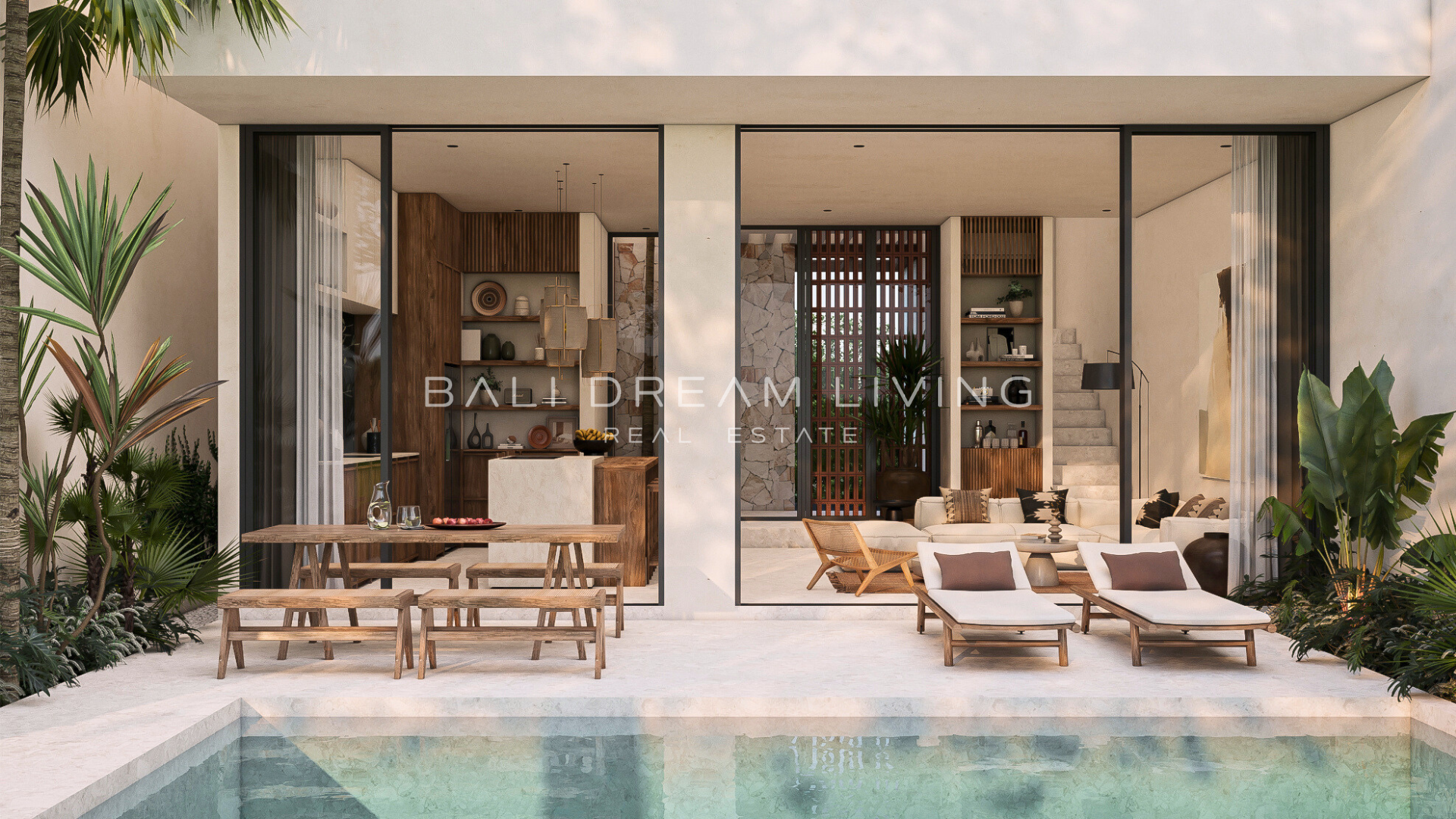 This villa showcases a stunning high-end design that makes the most of every area. The first level opens up to an expansive space with high ceilings, an open kitchen and living room, and views of the pool and surrounding jungle. A spacious powder room adds to the convenience, and ample storage is available throughout the villa, including additional space under the stairs for surfboards, luggage, or other large items. The villa also offers direct outside access to the backyard, perfect for gardeners and pool maintenance.