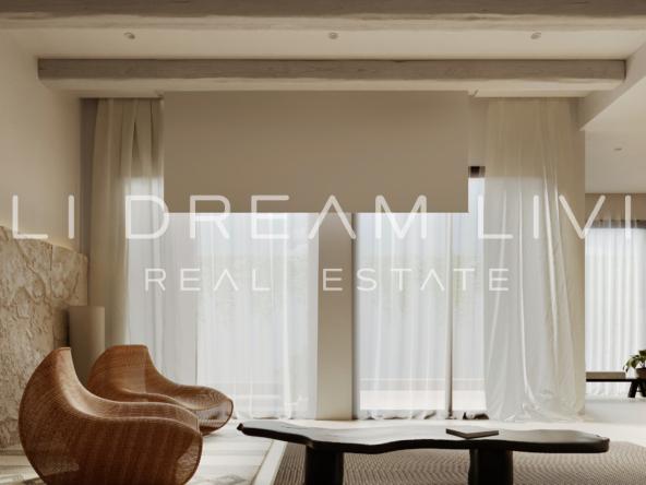 Inside, the villa is bathed in natural light, with large spaces, high ceilings, and interiors that feature light sandy tones. This carefully designed space offers a perfect balance of sophistication and relaxation, making it an ideal retreat from the everyday hustle and bustle. Each of the two bedrooms is complemented by its own bathroom, and the open kitchen-diner is perfect for entertaining.