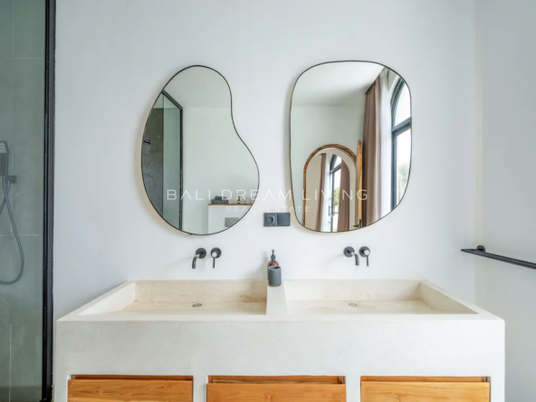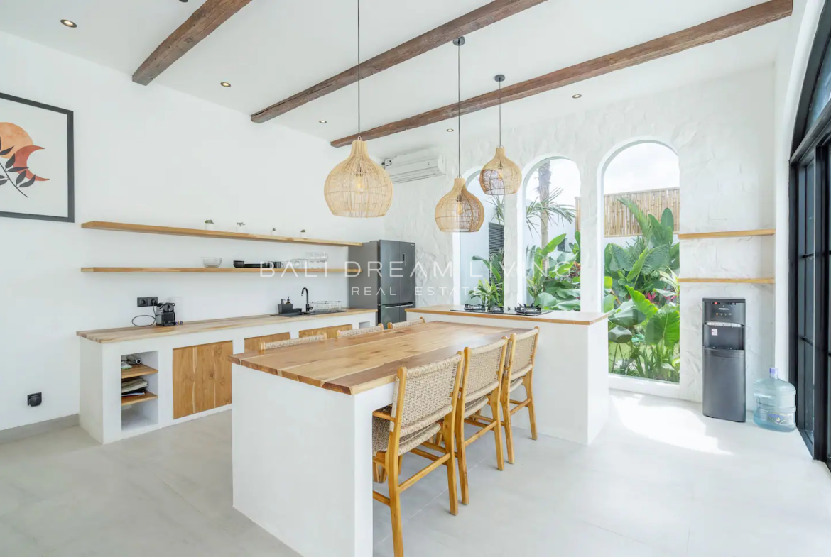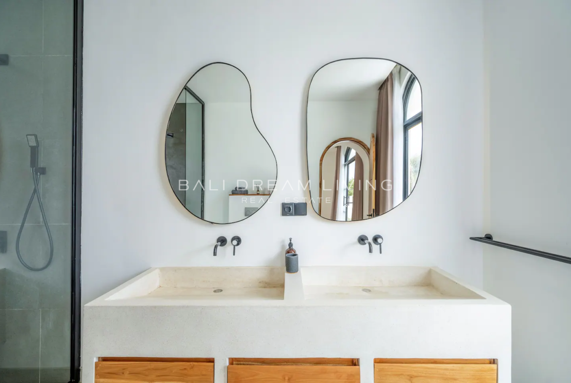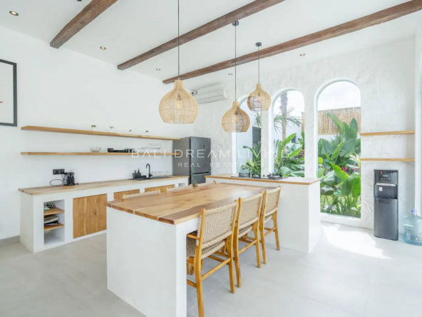This beautifully crafted two-bedroom Mediterranean-style villa offers an ideal retreat or a fantastic investment opportunity in one of Uluwatu’s most sought-after areas. Designed to blend comfort with charm, the villa features a two-story main residence where the open-plan living area and kitchen create a welcoming atmosphere. Upstairs, you’ll find a spacious bedroom with an ensuite bathroom, while a separate guesthouse offers a private studio-style bedroom and bathroom, ensuring your visitors enjoy the same level of comfort and privacy.