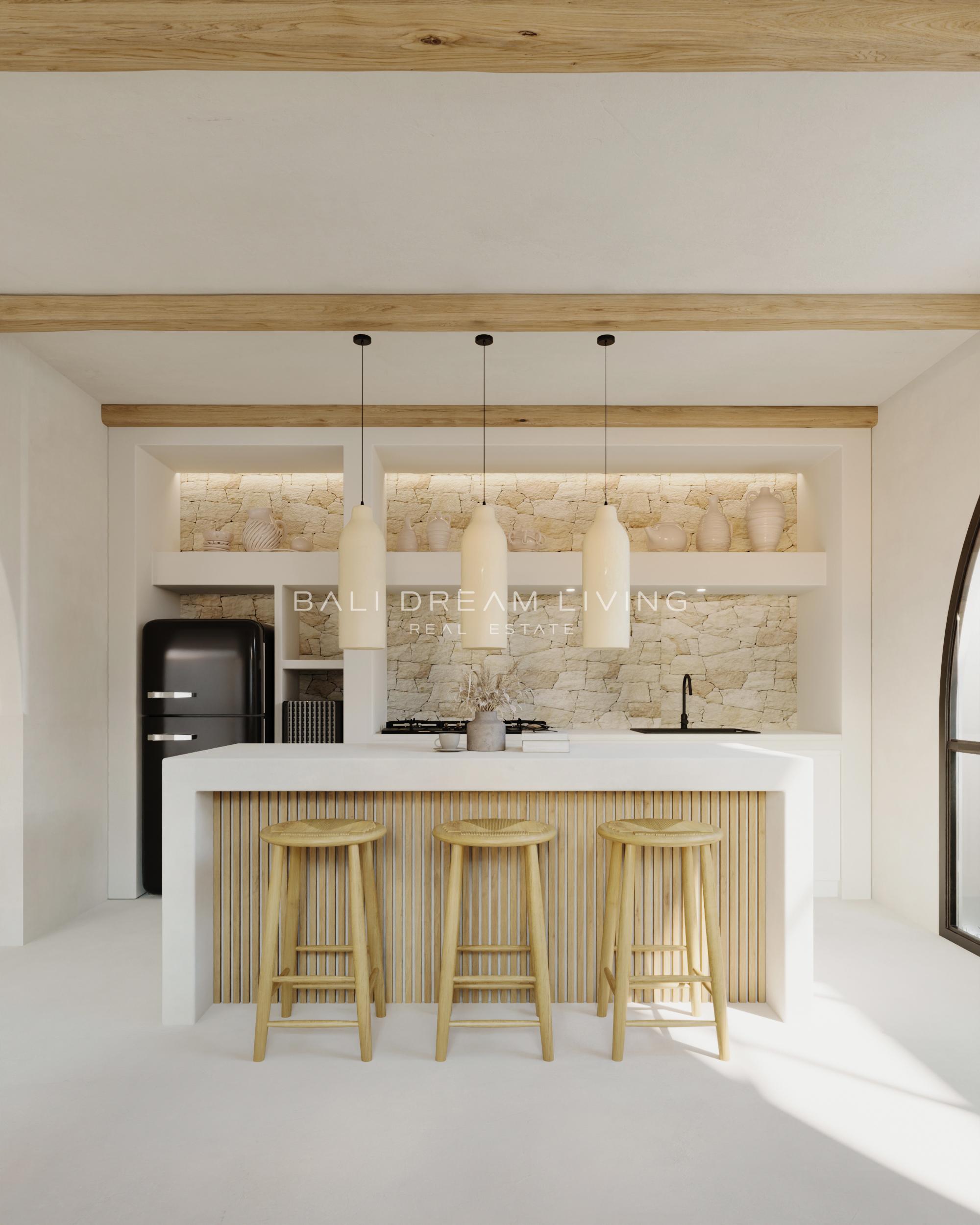 Set in the peaceful surrounds of Ungasan, this two-bedroom villa is a contemporary haven designed for modern living. The ground floor welcomes you with a sunken lounge area, a spacious dining space, and a sleek kitchen equipped with a breakfast counter, all overlooking the private pool and outdoor seating area, perfect for unwinding in style.
