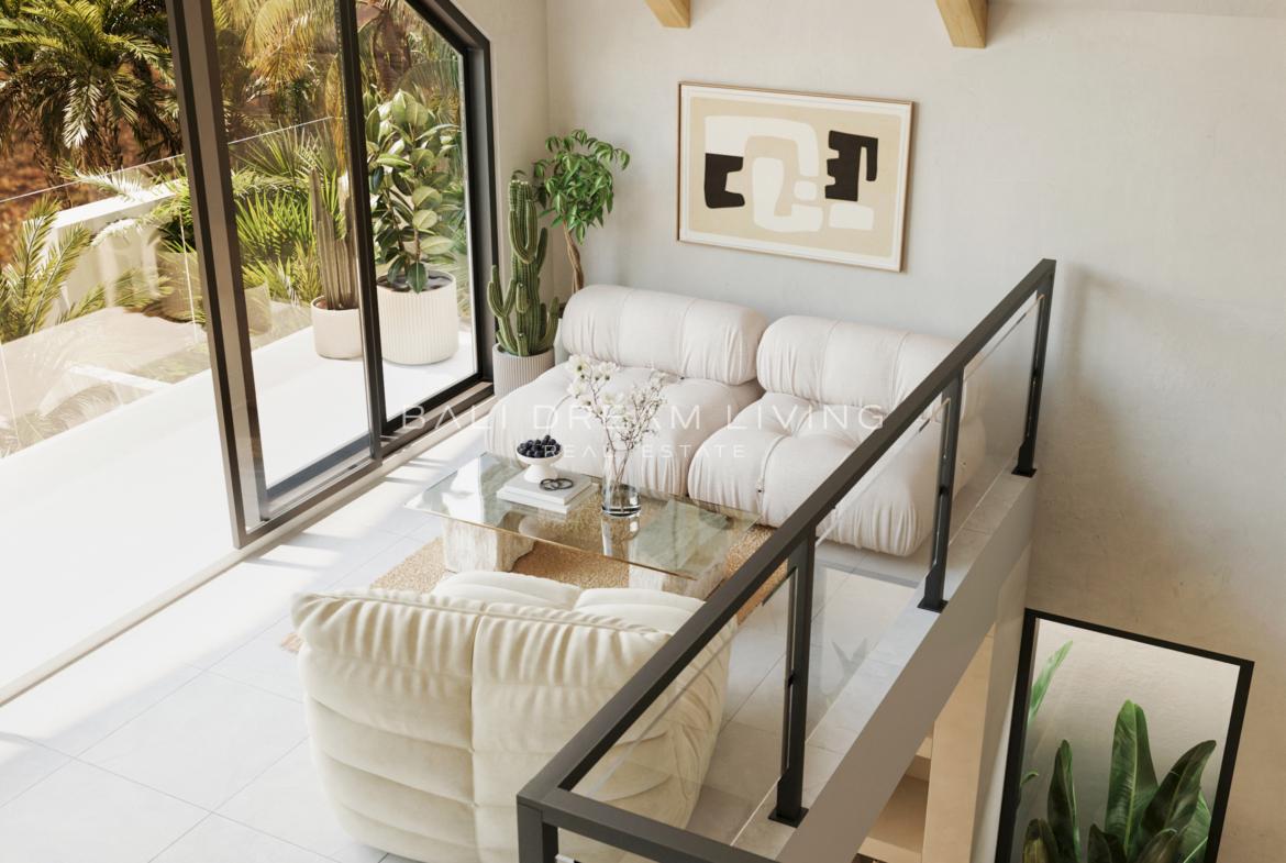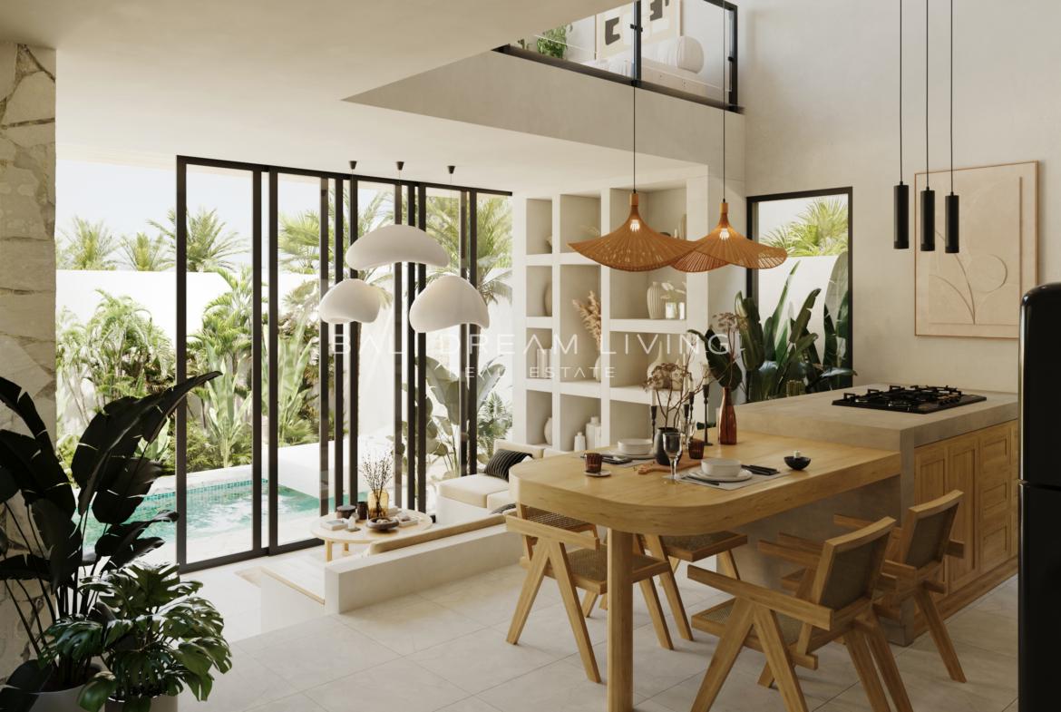 Experience serene island living in this elegant two-bedroom villa, a modern retreat spread over two levels and thoughtfully designed to offer comfort, privacy, and space. As you enter, the spacious living and dining area welcomes you with abundant natural light, creating a warm and inviting ambiance. The villa features one bedroom on each floor, making it ideal for privacy and flexibility, along with two beautifully appointed bathrooms. A versatile mezzanine offers additional space for relaxation or work, while a quaint balcony provides a cozy spot to take in the charming views.