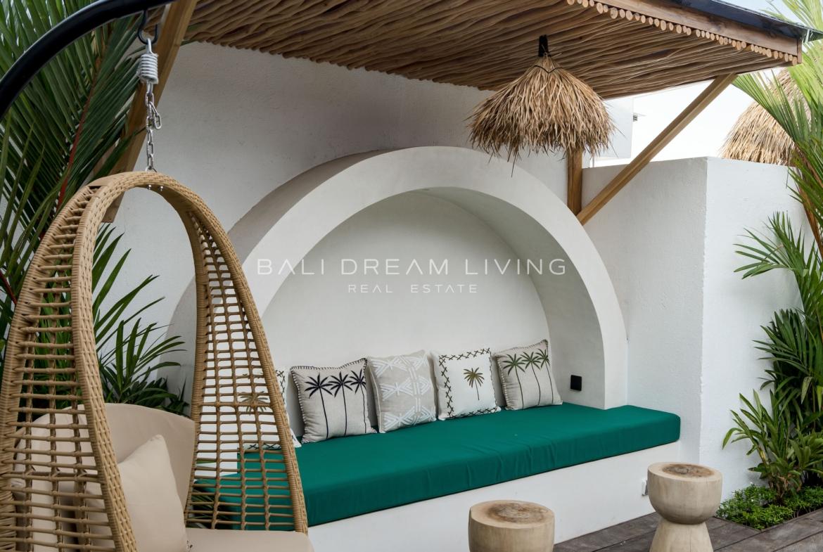 High-end finishes enhance the villa’s contemporary appeal, offering two spacious bedrooms, each complemented by its own elegant bathroom. The inviting, open-plan layout leads directly to a private 20 m² pool, perfect for leisurely afternoons in Bali’s warm climate. A separate storage room adds practicality, while the community itself ensures peace of mind with 24/7 reception, security, technical support, and CCTV surveillance.