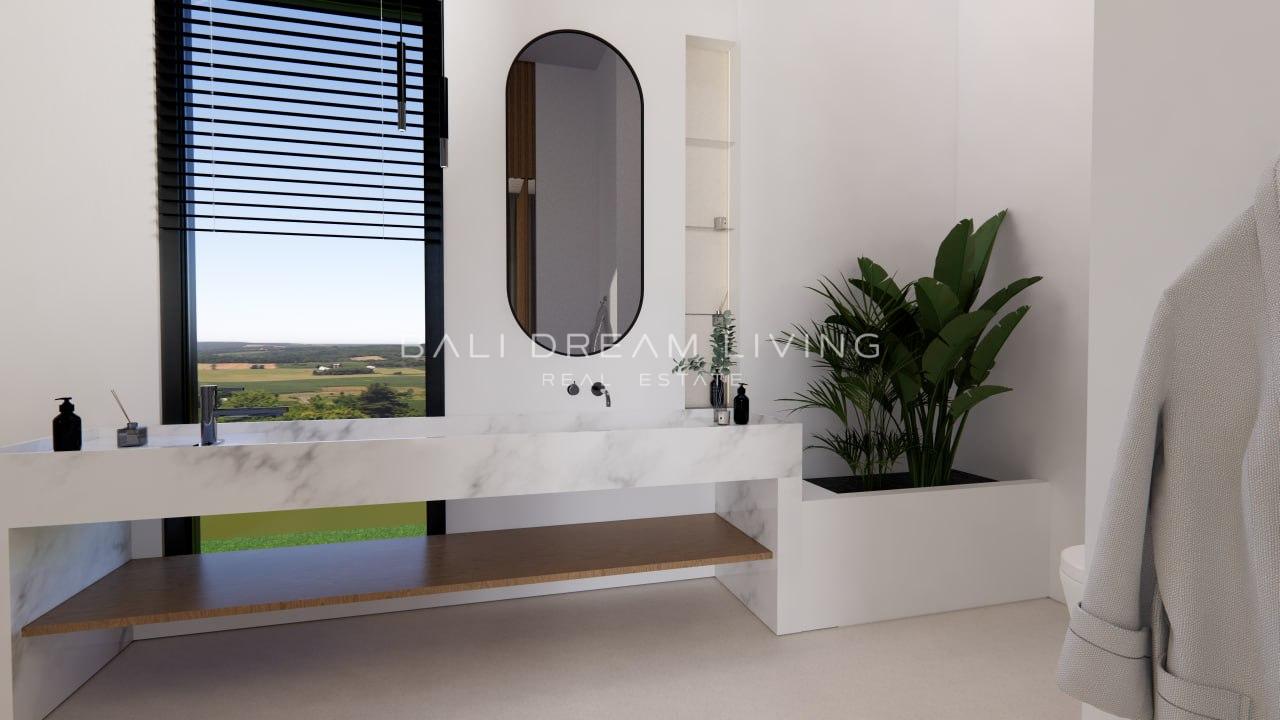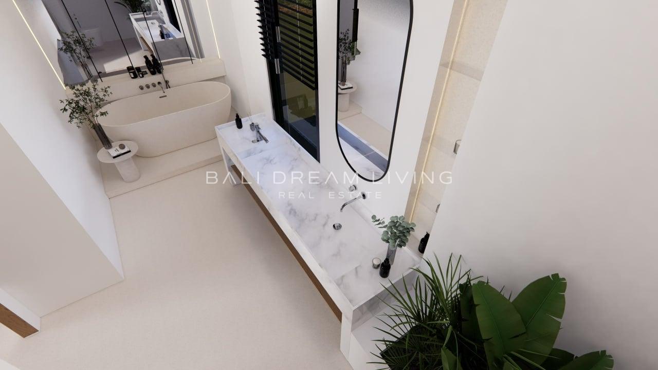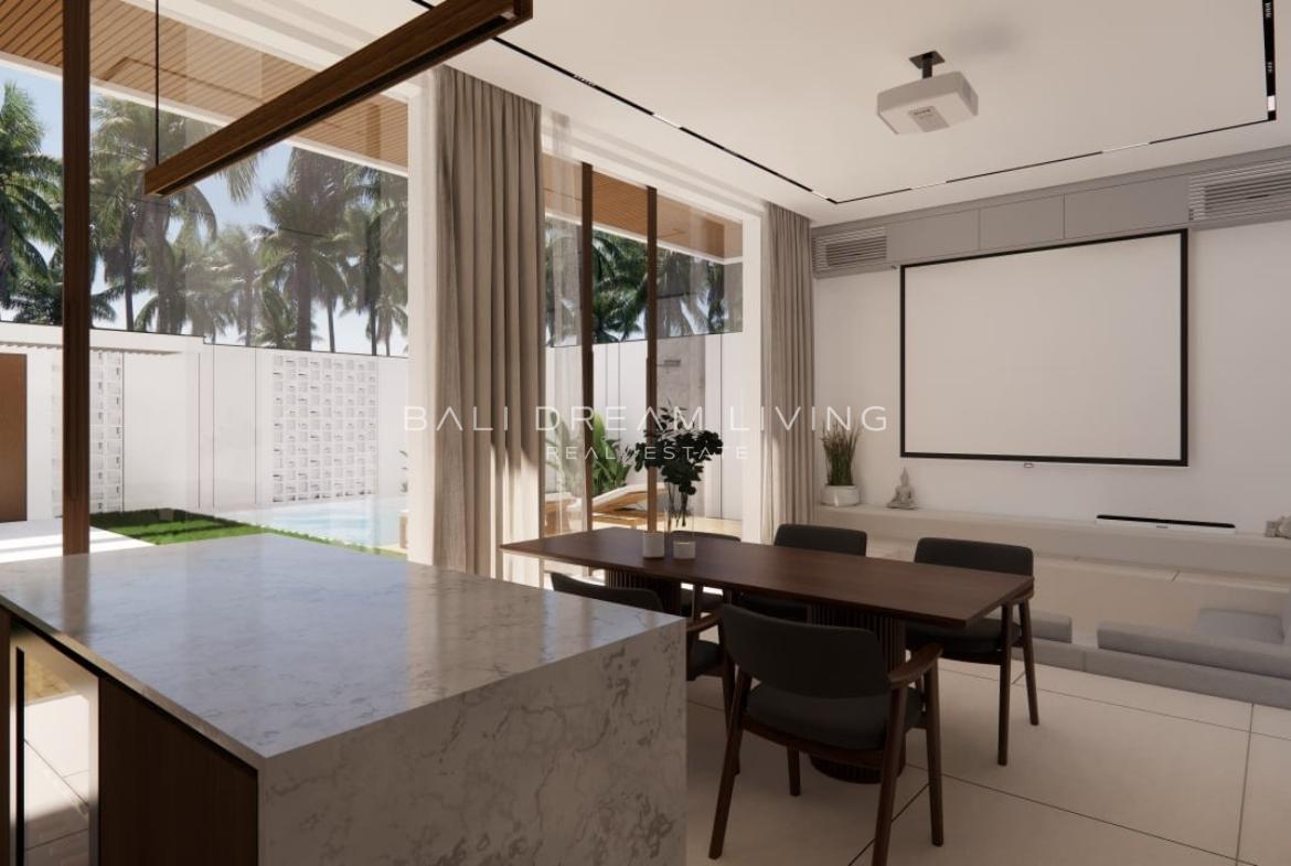 Immerse yourself in modern elegance with this two-bedroom Pandawa villa, thoughtfully crafted for both everyday living and leisurely retreats. The ground floor presents an open-concept space where a sunken lounge, dining area, and state-of-the-art kitchen effortlessly flow together, creating a bright and welcoming atmosphere.