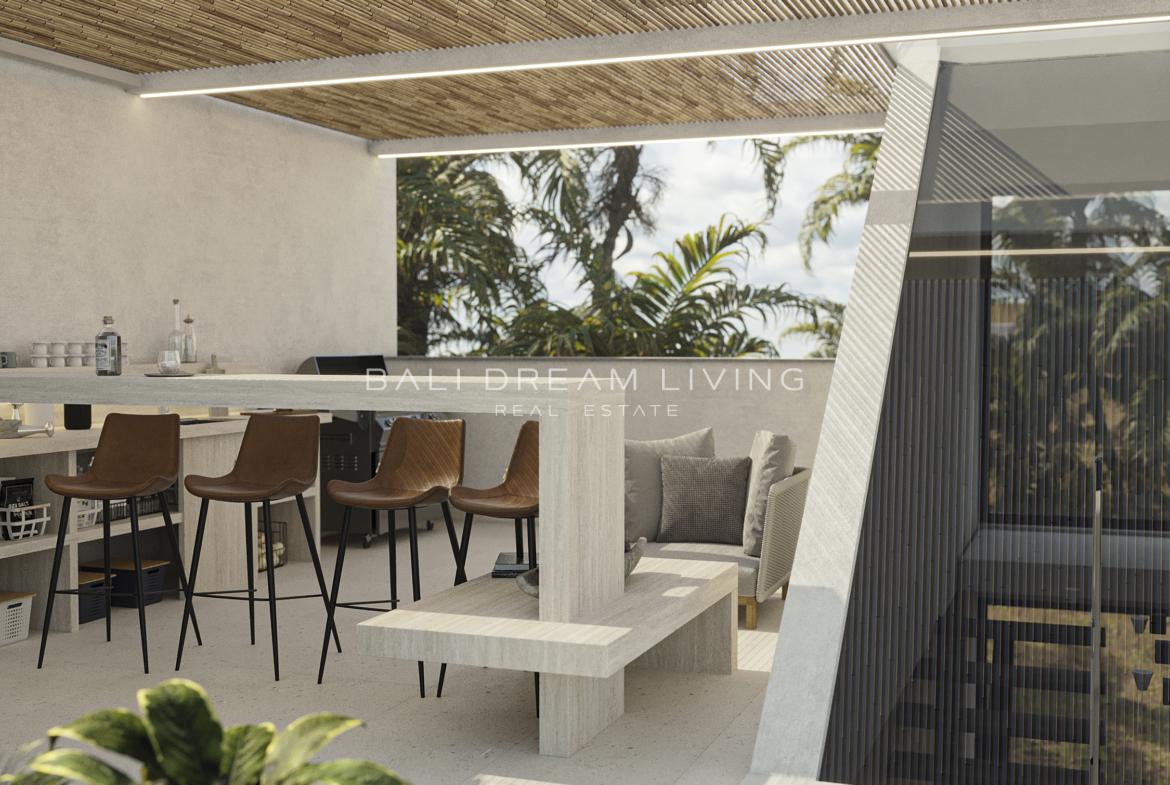Upstairs, three beautifully designed bedrooms await, each with sleek finishes and plenty of storage, while two contemporary bathrooms offer a serene escape. The villa is complete with an open rooftop, ideal for hosting with its gas BBQ and kitchenette, offering breathtaking ocean views. Finished with high-end materials and touches of Japandi design, the villa embodies balance, harmony, and natural elegance. Additional conveniences include an indoor garden, premium curtains, air-conditioning throughout, and secure parking for both cars and motorbikes.