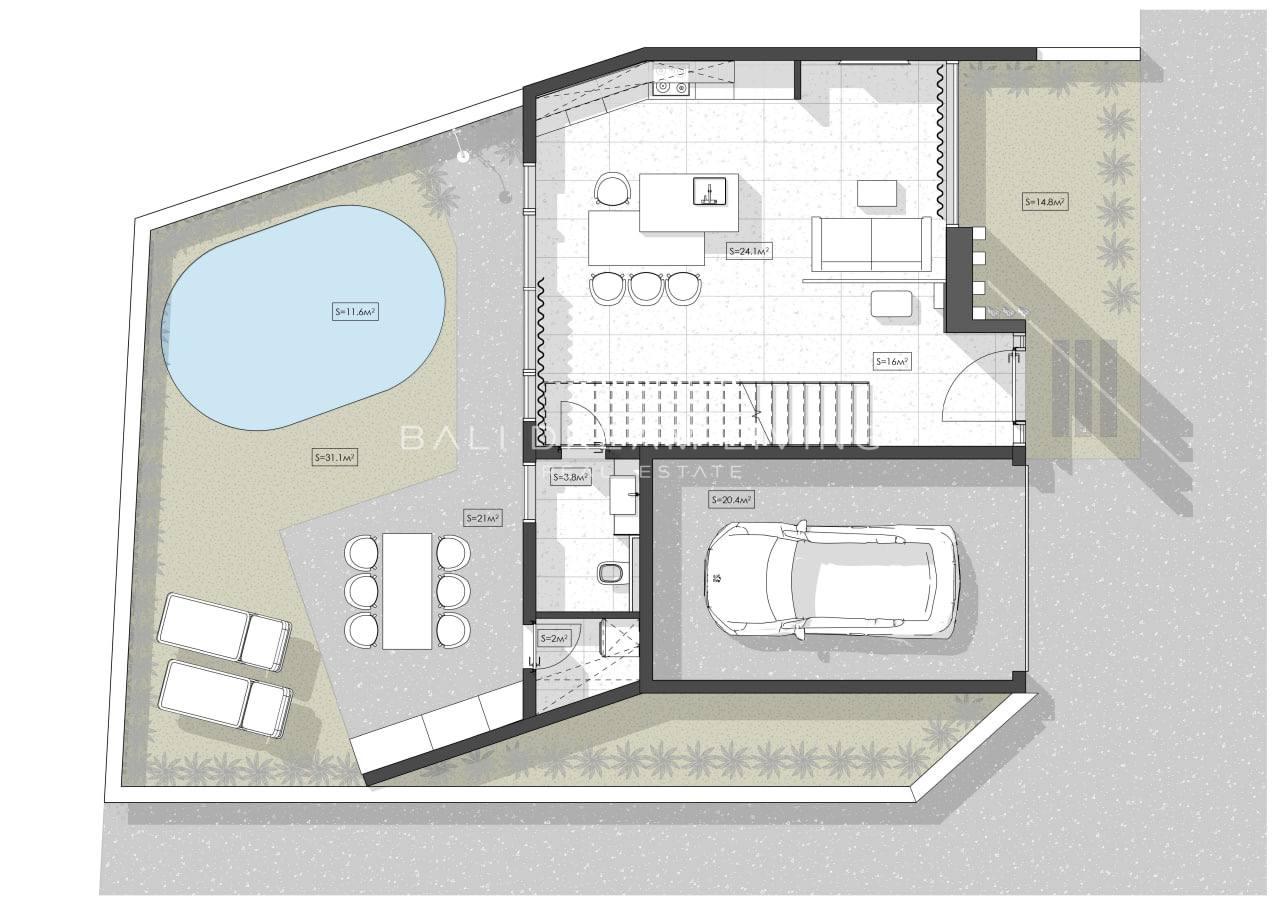 Nestled within the prestigious complex, this elegant three-bedroom villa offers a blend of luxury and tranquility just moments from the pristine Pandawa Beach. With its open-concept ground floor, the villa features a modern kitchen, a spacious living area, and large windows that fill the space with natural light, opening out to a private pool and terrace perfect for outdoor relaxation.