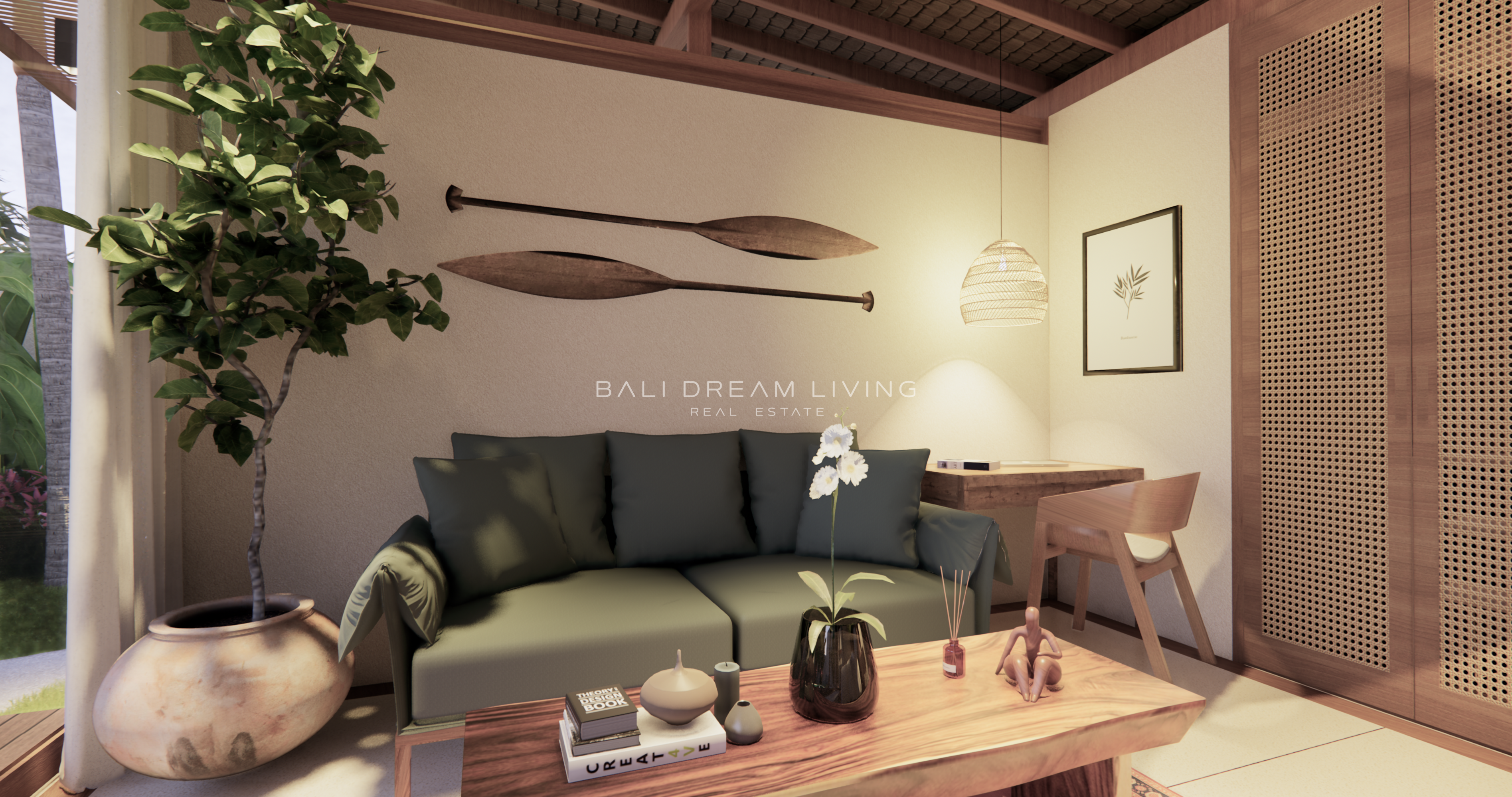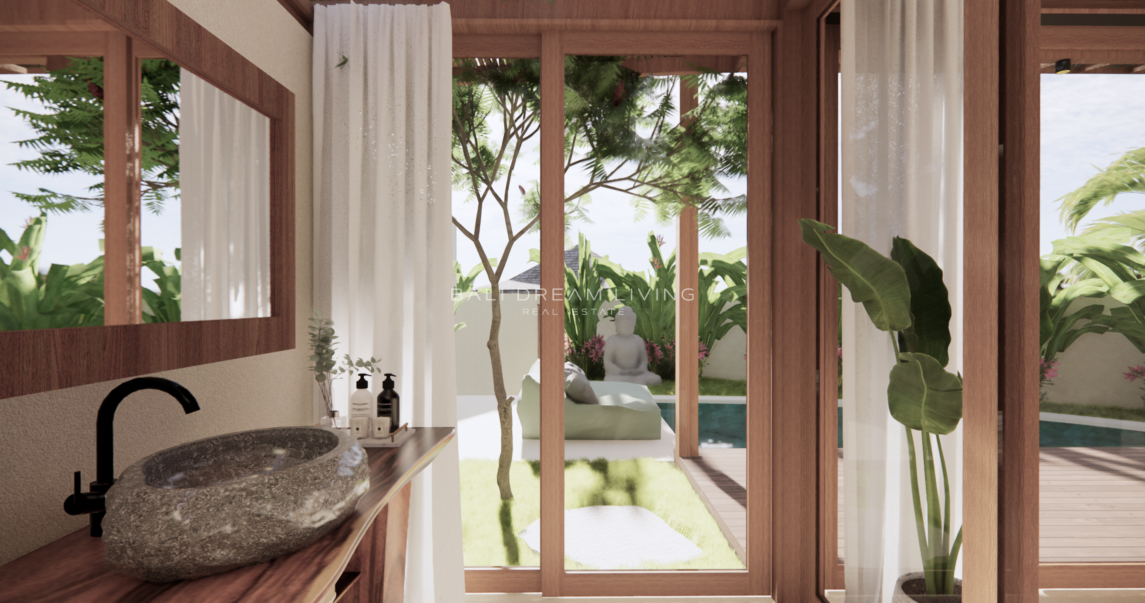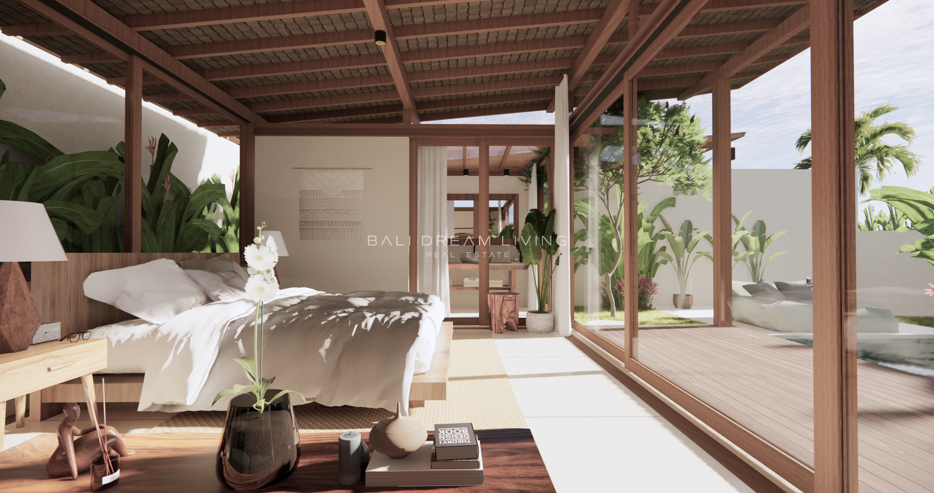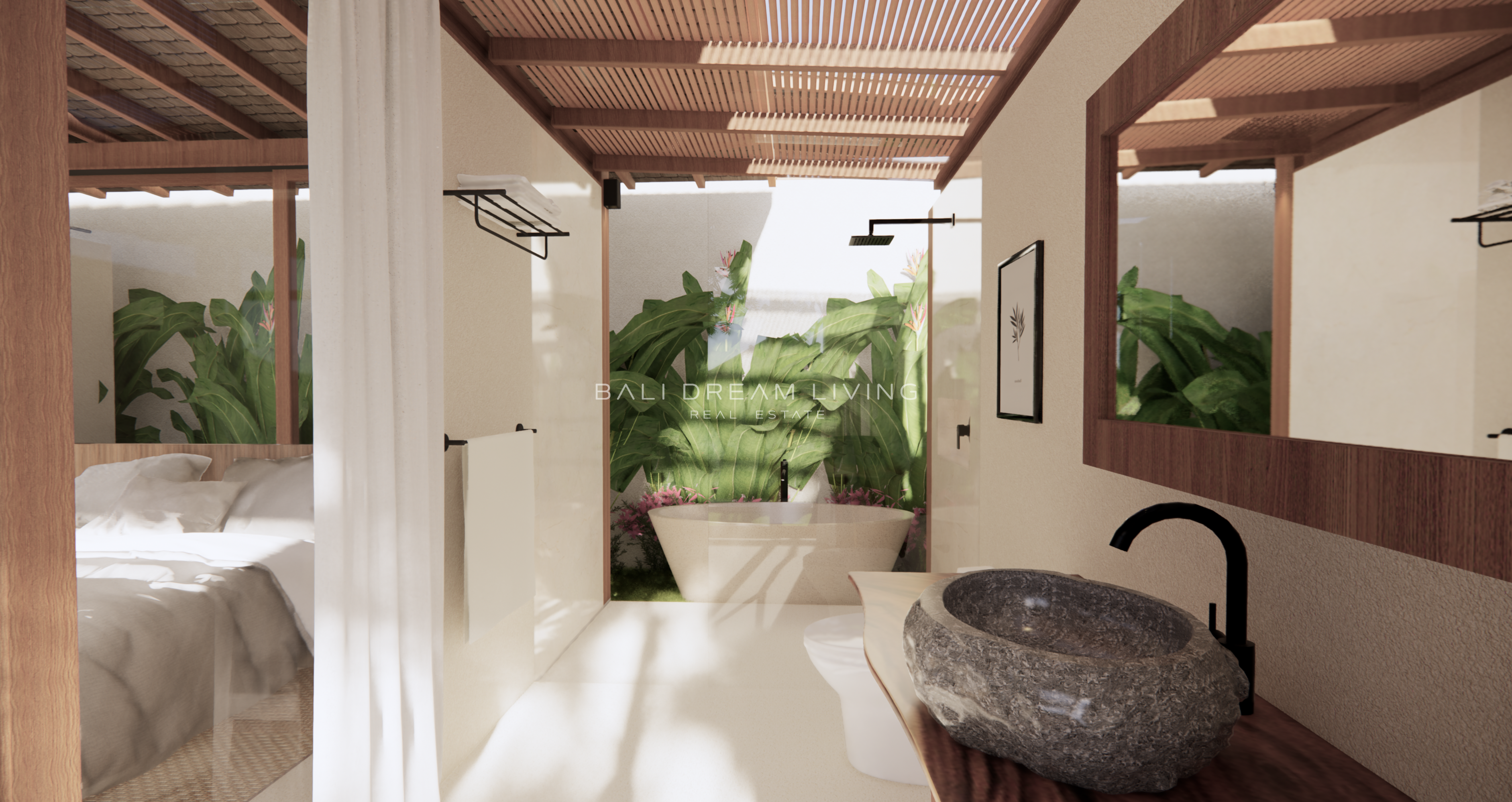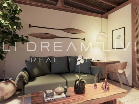 The modern en-suite bathroom complements the villa’s design, ensuring a comfortable and luxurious living experience. This property combines a prime location with peaceful surroundings, making it an ideal choice for a personal retreat or an investment opportunity in Bali.