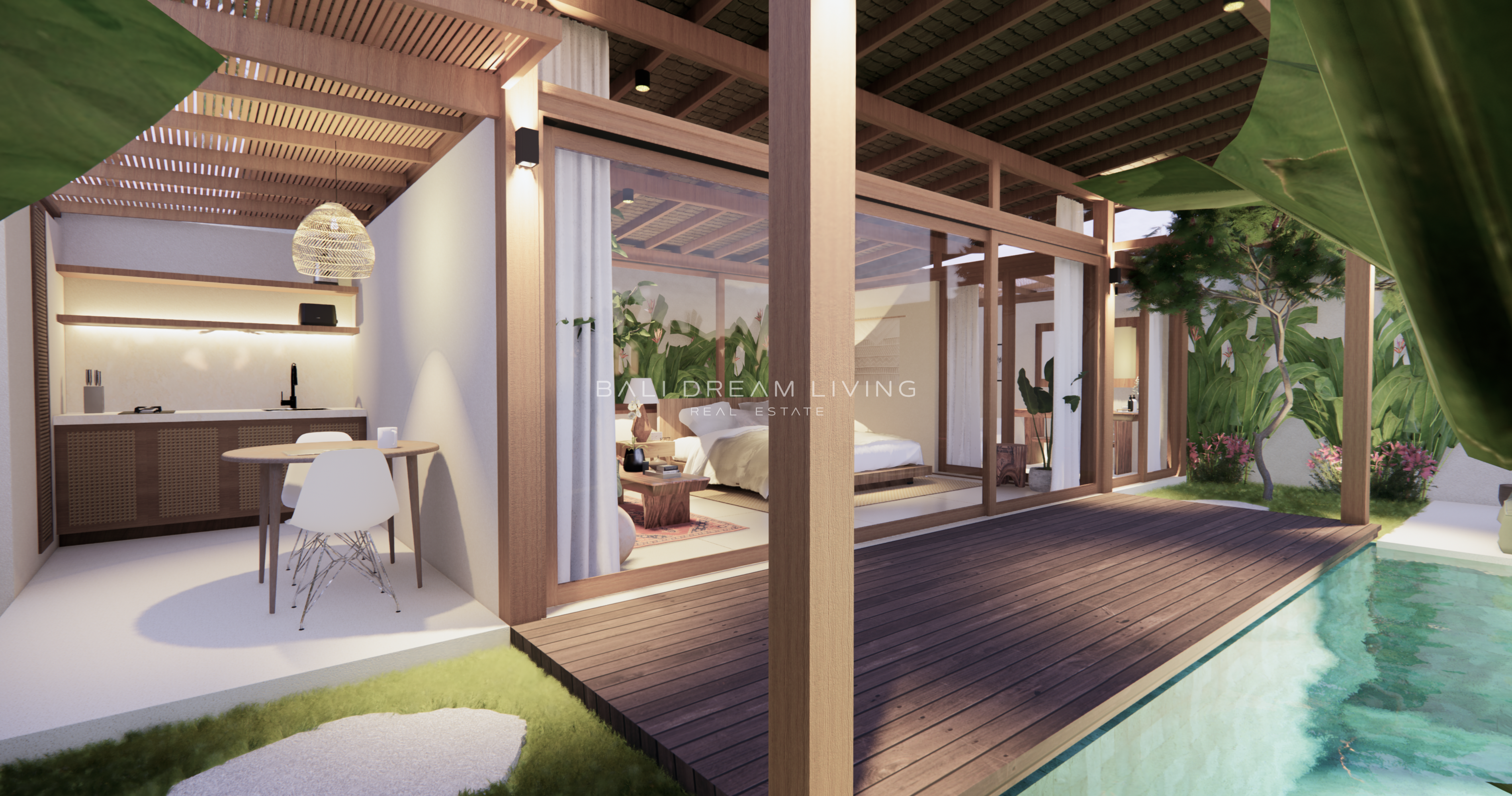 This elegantly designed studio villa, all on one level, offers a seamless blend of comfort and style in a tranquil setting.